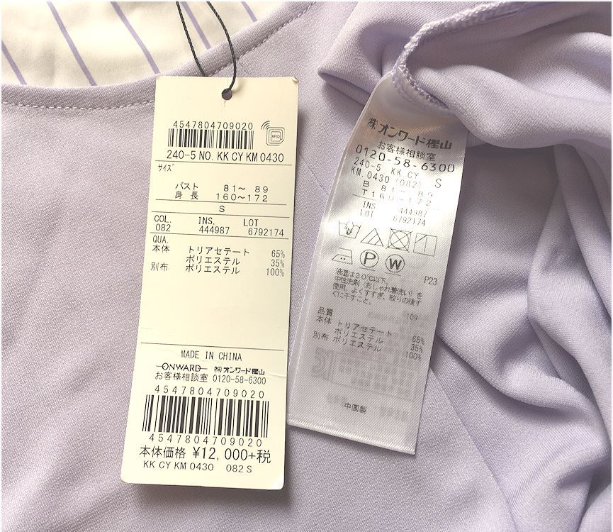 最終価格★iCB アイシービー・オンワード★トリアセテート・パット付・ブラウス・ライトパープル・大きめSサイズ・¥13,200★未使用