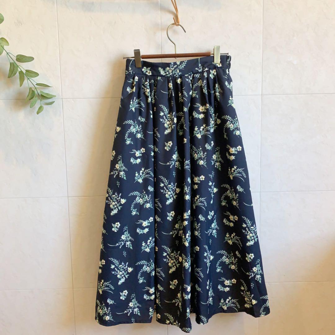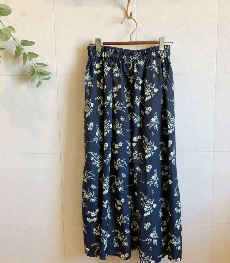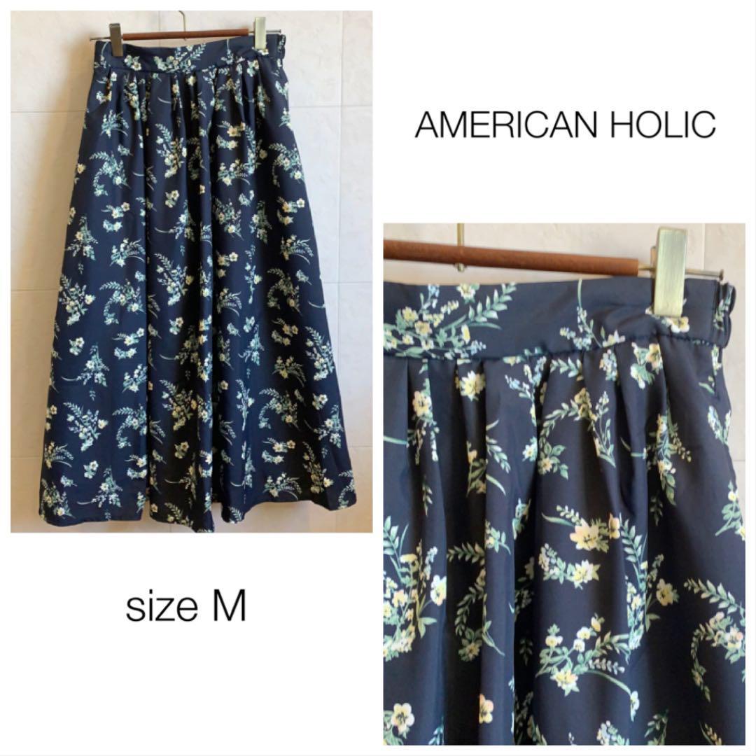 AMERICAN HOLIC ネイビー 花柄ロングスカート ポリエステル  1083