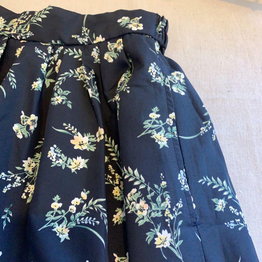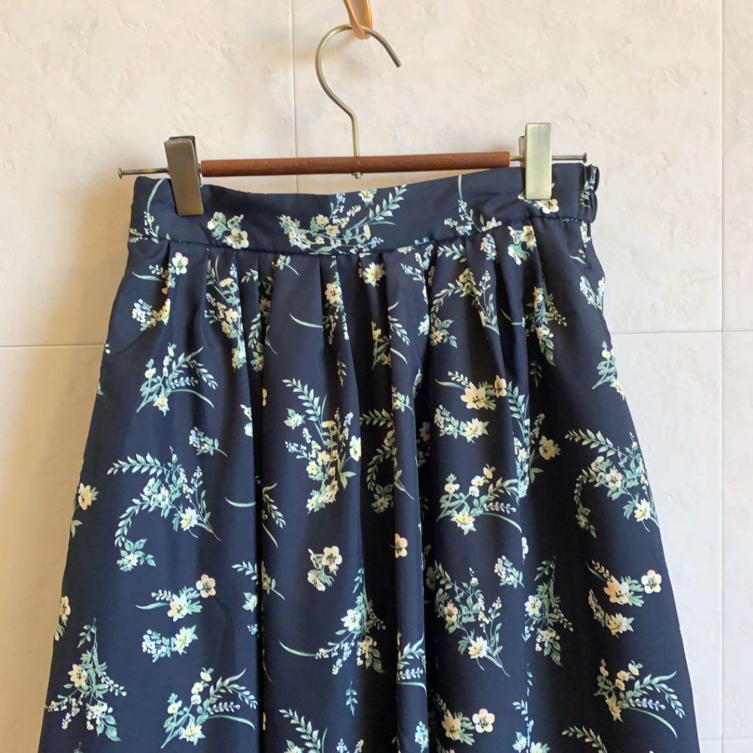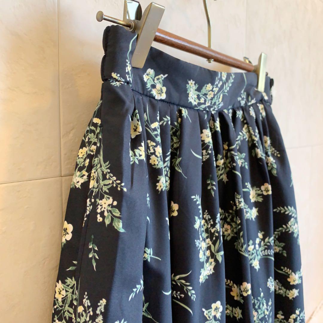 AMERICAN HOLIC ネイビー 花柄ロングスカート ポリエステル  1083