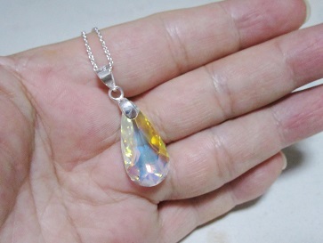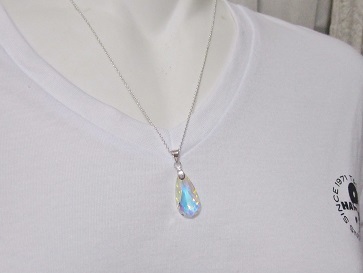サイズ | サイズ: ★雫のモチーフの大きさは、24×12ミリです。 クリスタルオーロラスワロフスキー 1石の大きさは、24×12ミリです。 チェーンはシルバーの小豆チェーン0.35×45cmです。 |