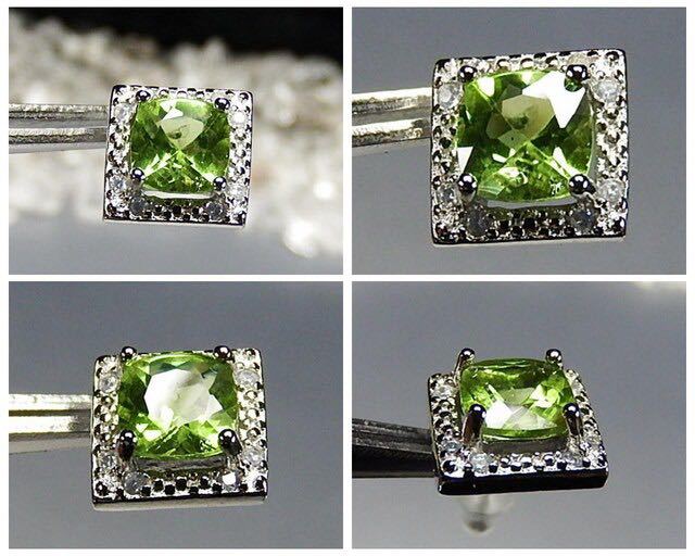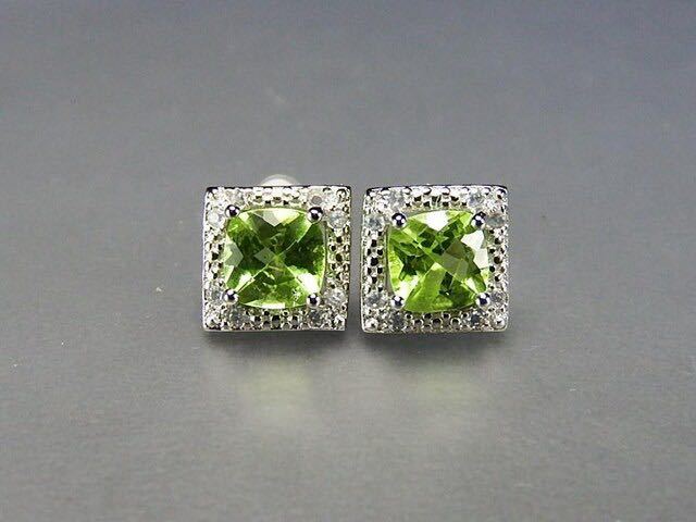 AAペリドット四角カットピアス未着色天然石黄金の宝石8月の誕生石石街