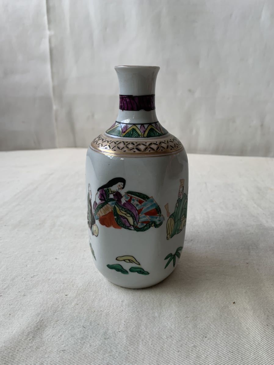旧家蔵出し品 図柄が素敵な九谷焼の徳利です。コレクションとしてはもちろん、花器などに使って頂いても素敵だと思います。