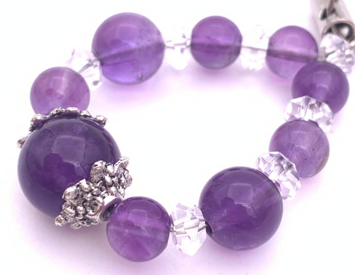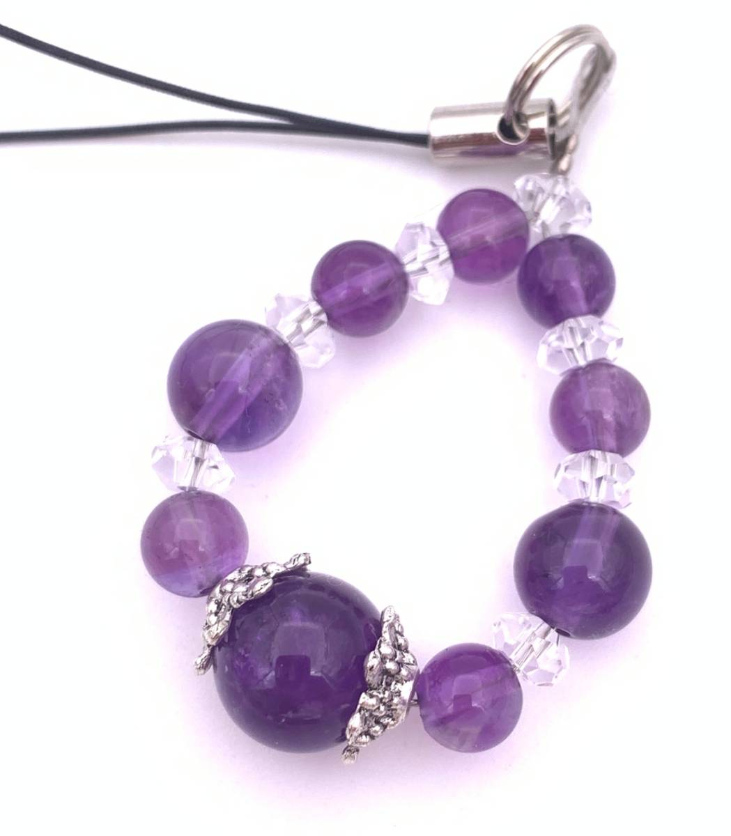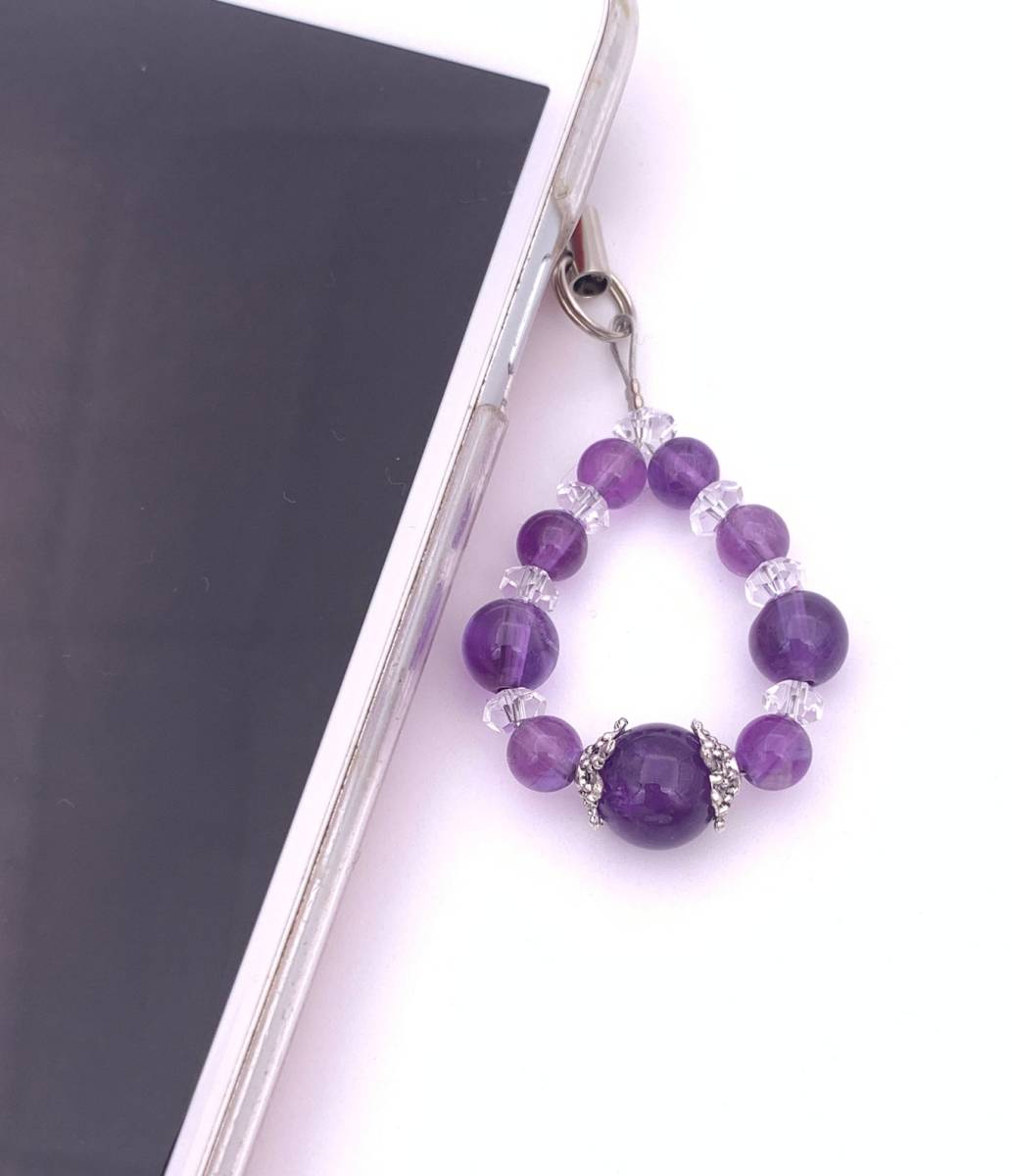 手作り!オリジナル★天然石アメジスト(紫水晶)AAのストラップ