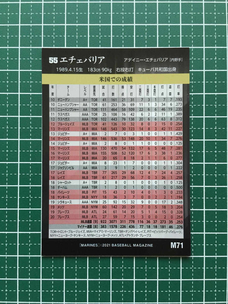 BBM 千葉ロッテマリーンズ ベースボールカード 2021