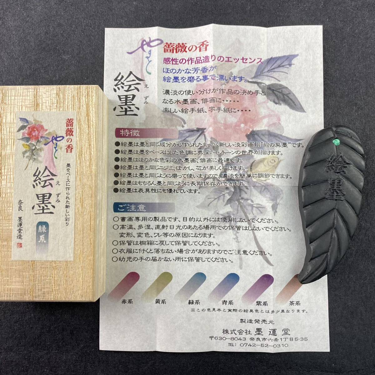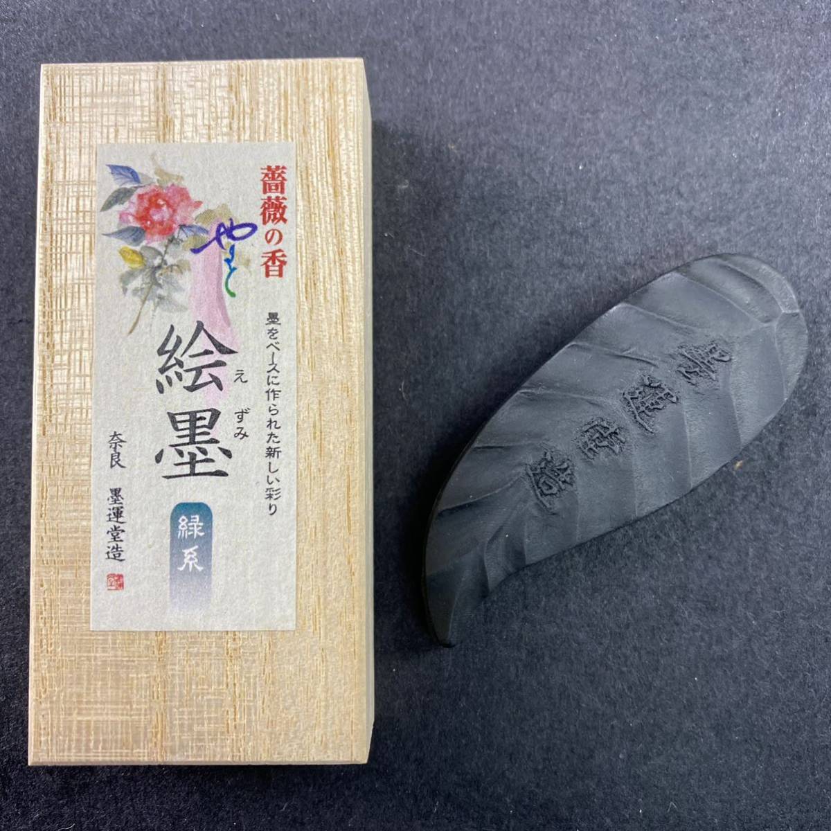 ※絵墨は墨と同じ成分から作られた全く新しい淡彩画用の" 絵具墨" です。 墨をベースにした色調に奥深いモノトーンの世界が描けます。 ほのかな 色彩の水墨画 俳画に最適です。 墨と同じように磨って使いますので濃 淡が簡単に調節でき、芯とニジミ. ぼかしが美しく描けます。 もちろん 墨と同じように長期保存ができ表具性にも優れています。 墨色は濃いと きは黒色、 薄めていくと各色の色彩が増してきます。 姉妹品に顔彩と同 じように使える” 絵墨" があります。