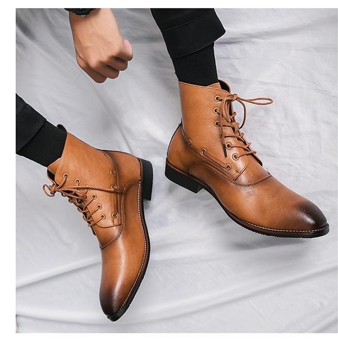 ★新品★メンズ TG21655-25.0cm/40 ショートブーツ ブラウン(2色) ビジネスシューズ ワークブーツ