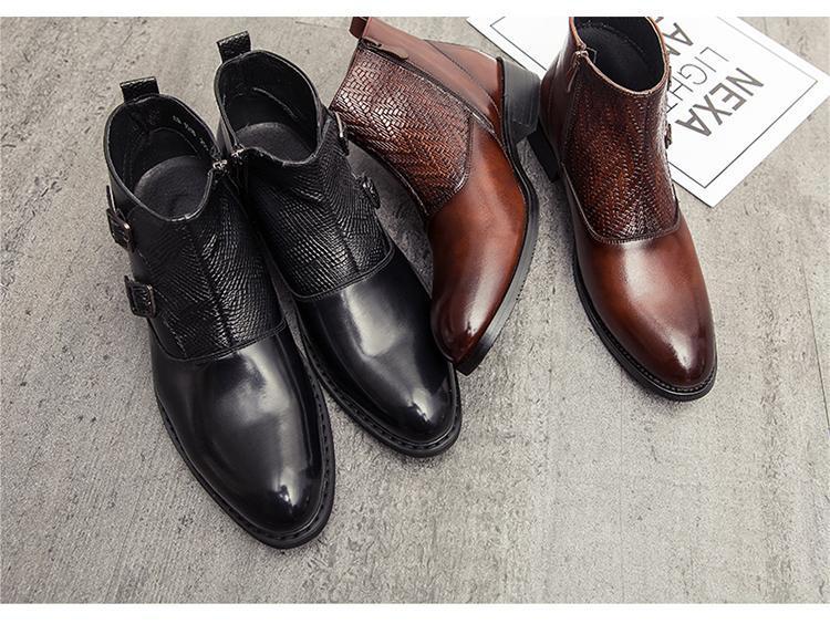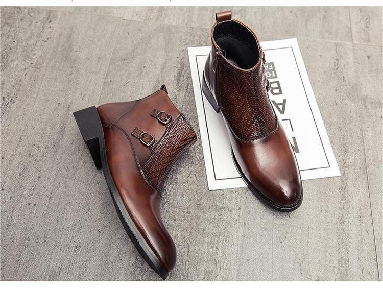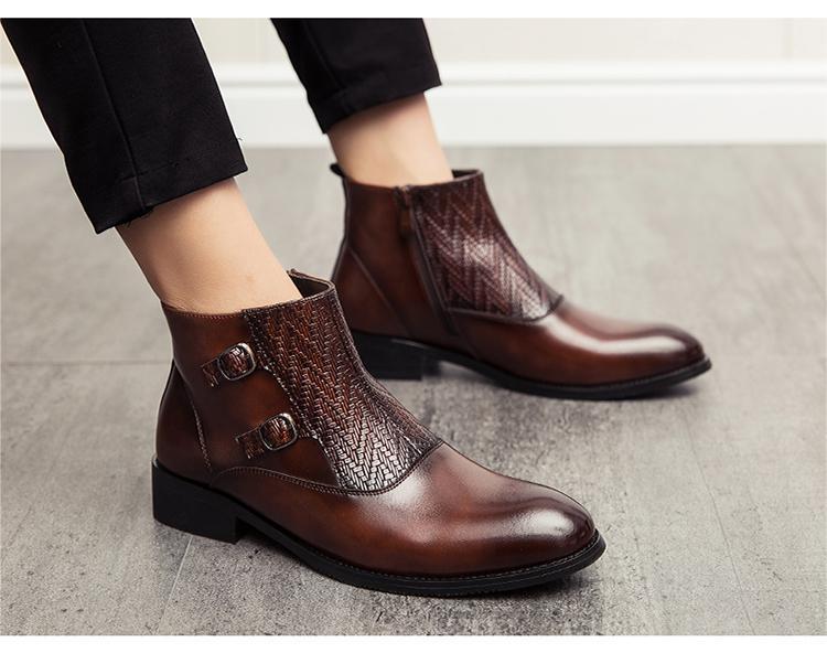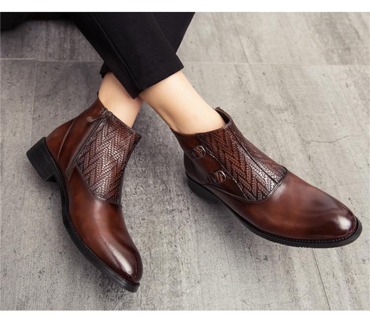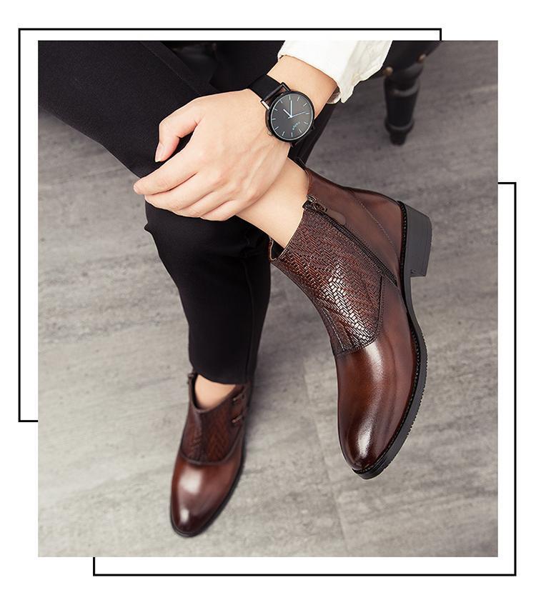 ★新品★メンズ TG21650-27.0cm/44 ショートブーツ ブラウン(2色) ビジネスシューズ ワークブーツ サイドファスナー