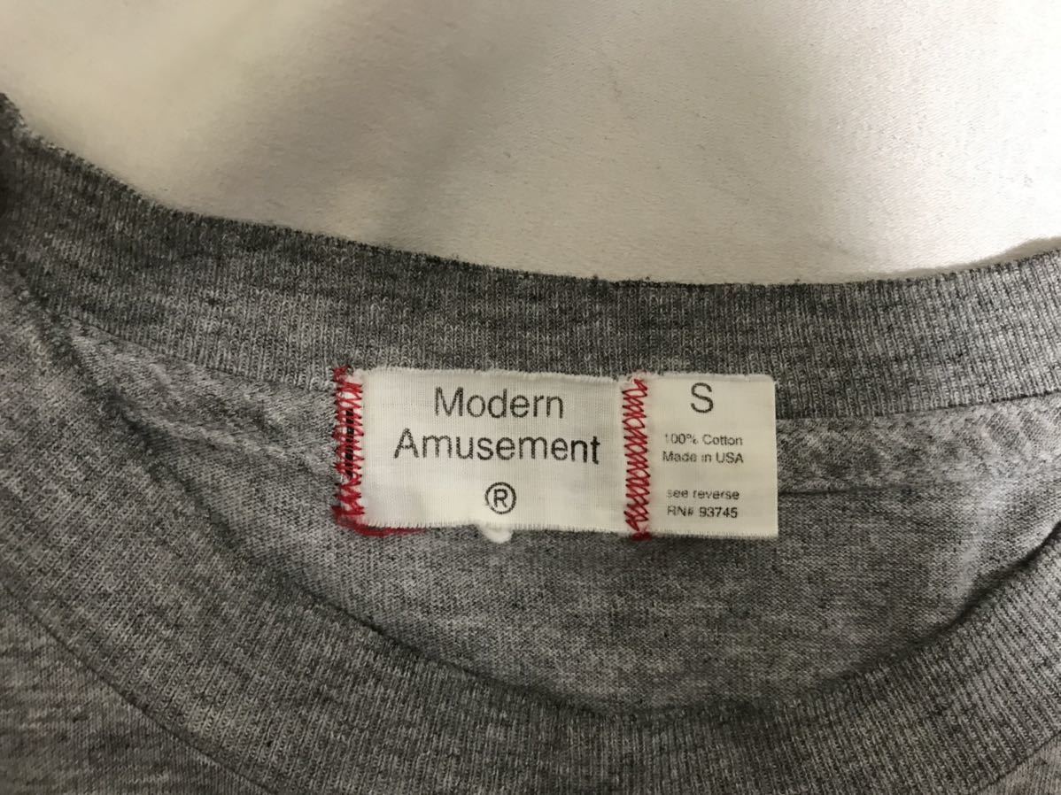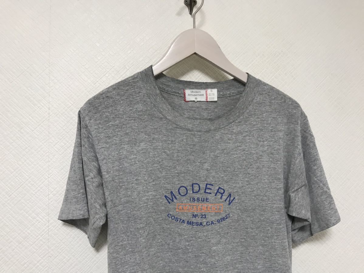 商品名:本物モダンアミューズメントModernAmusementコットンプリント半袖TシャツメンズビジネスサーフアメカジミリタリーグレーSアメリカ製