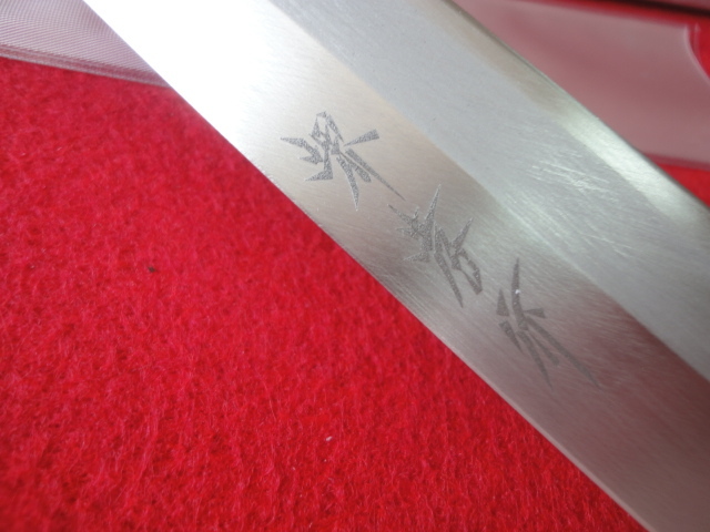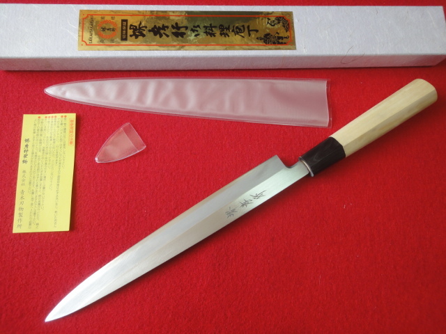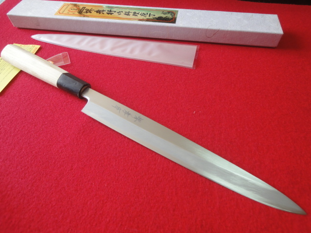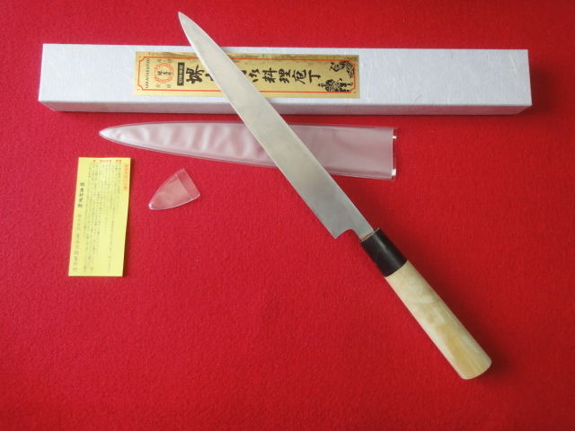 【堺孝行】※INOX 刺身包丁 刃渡22.8㎝ 全長37.5㎝ 峰厚3.2㎜ ※箱付 ※片刃 中古品 全国一律送料1100円