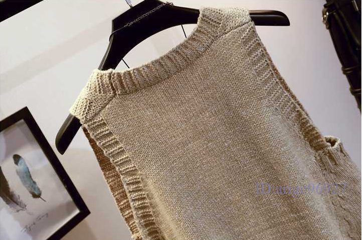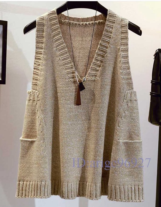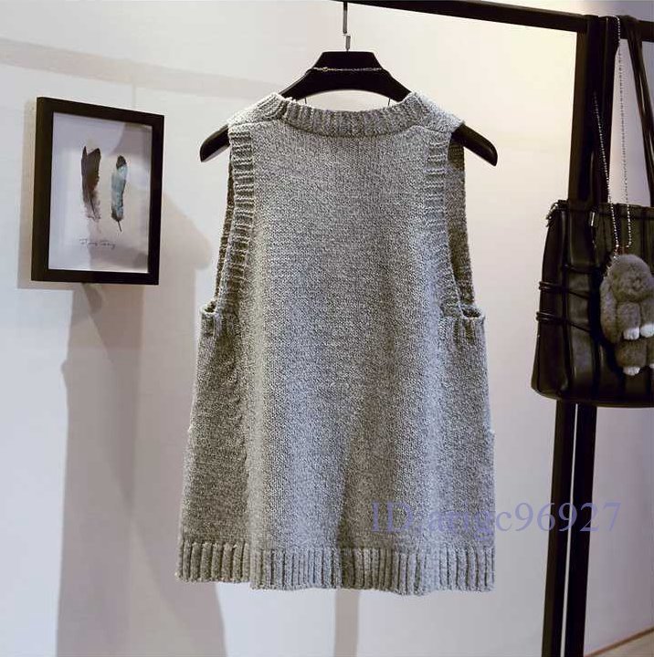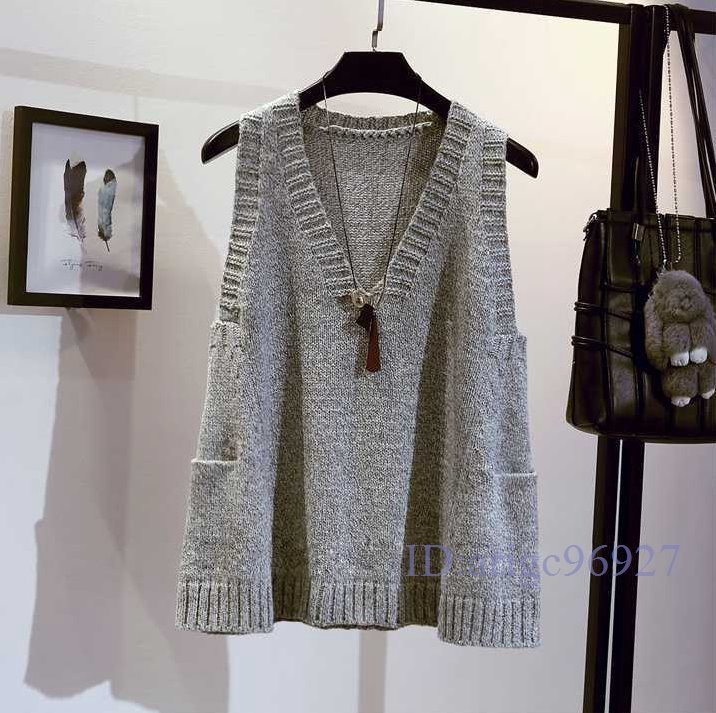 Q784☆新品 お洒落のアクセントに 綿混ニットベスト レディース Vネック ゆったり サイドポケツト付きショート ベスト オシャレ グレー