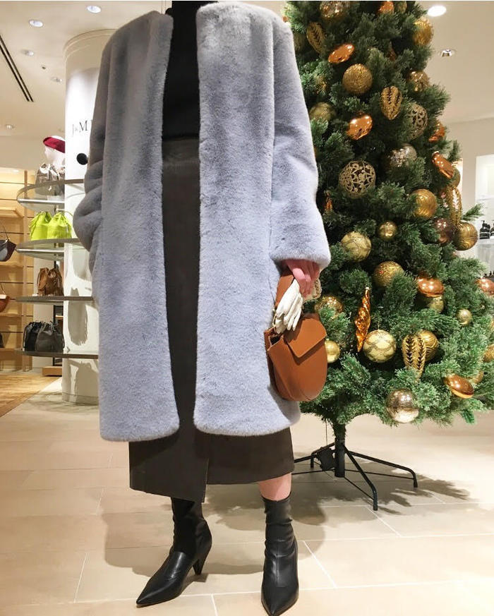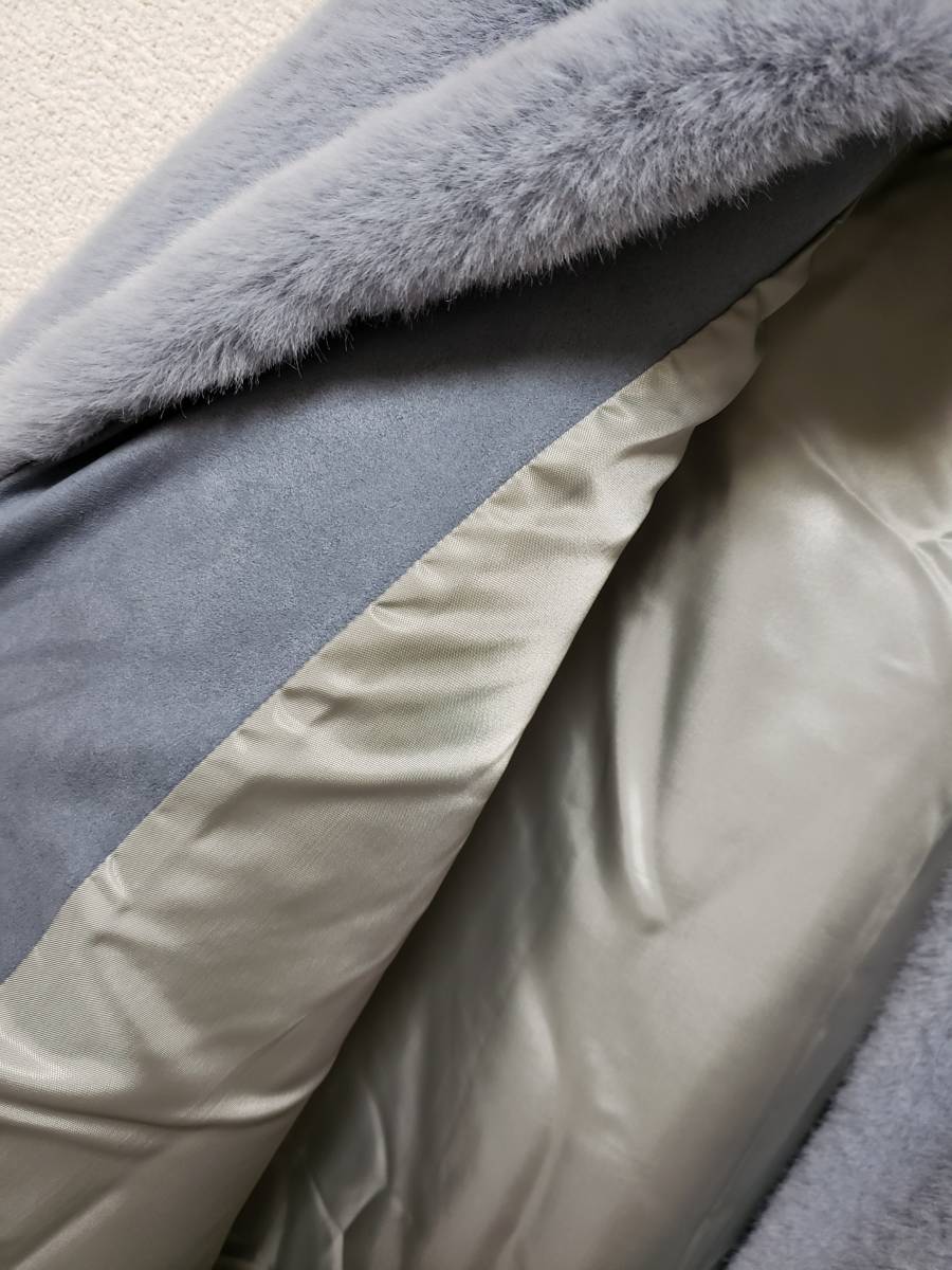 リアルミンクのような毛並みと滑らかな肌触りのエコファーを使用、ゆったりしたシルエットです。