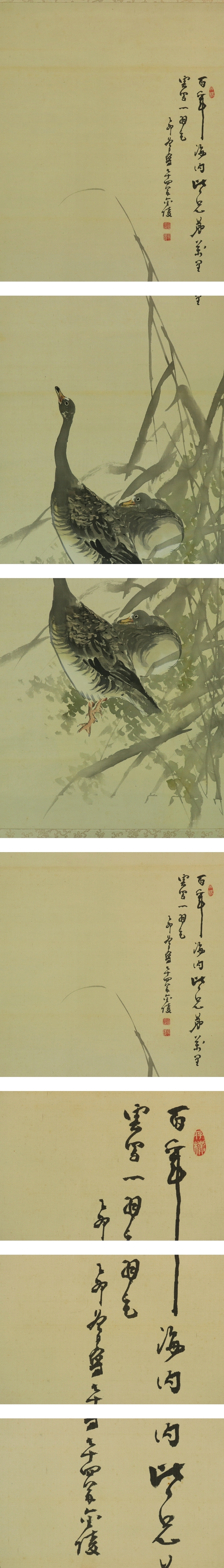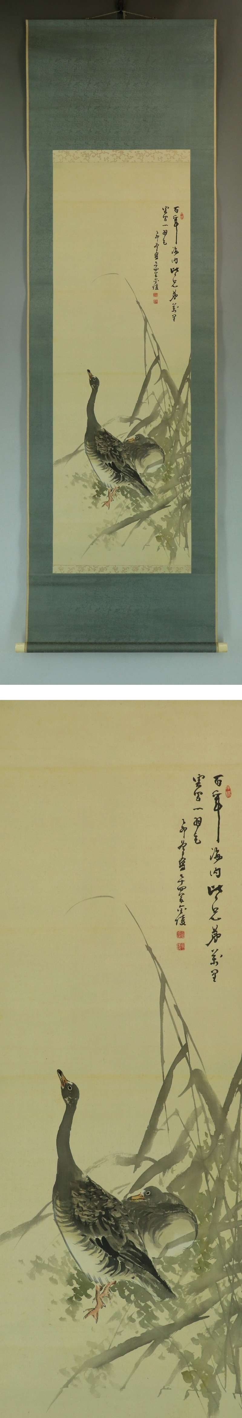 | №2210016【真作】石井金陵【双鴨図】◆絹本◆合箱◆掛軸 | |