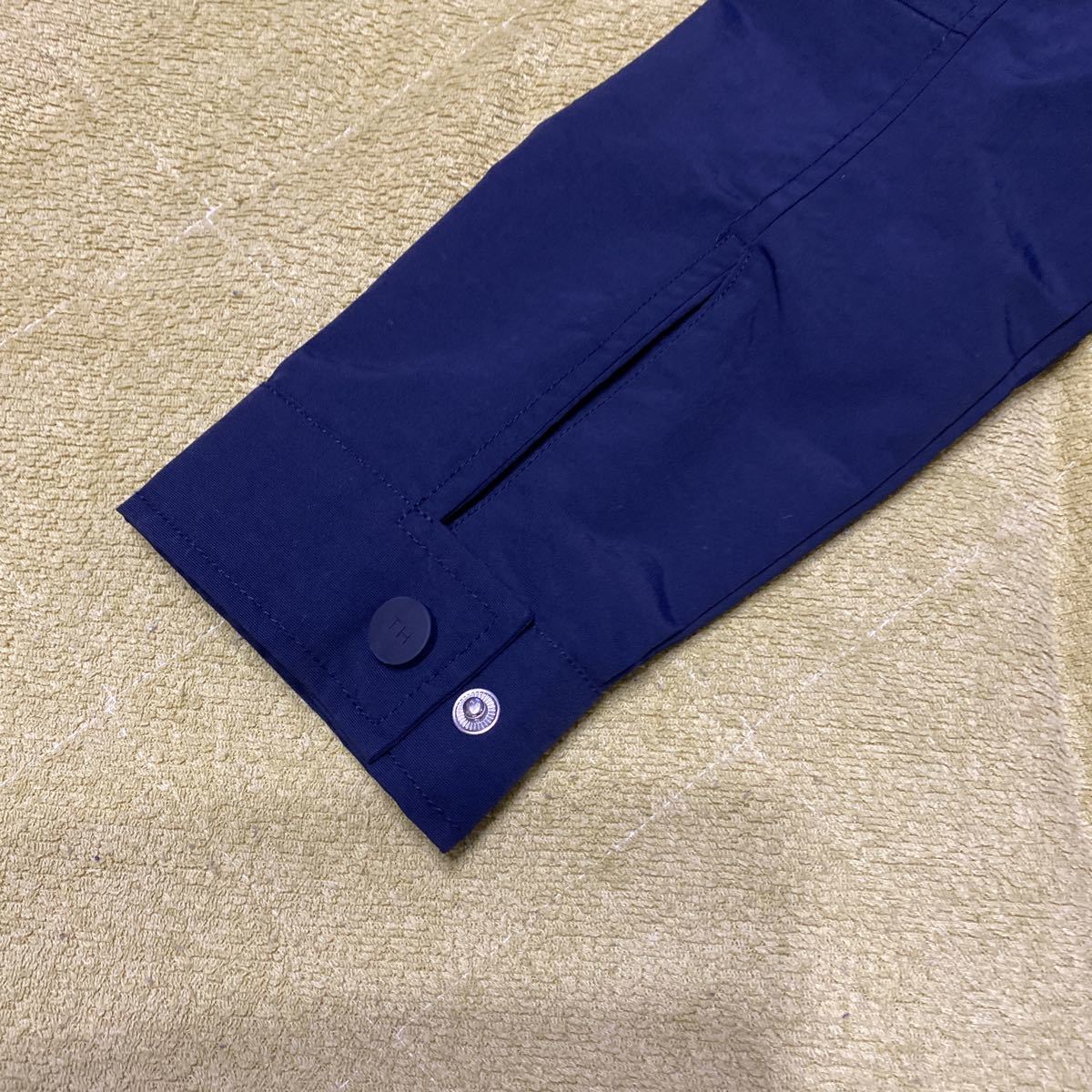 写真では、色合いが光りの加減で明るく見えますが、紺色になります。