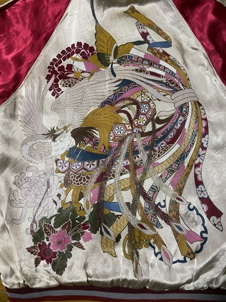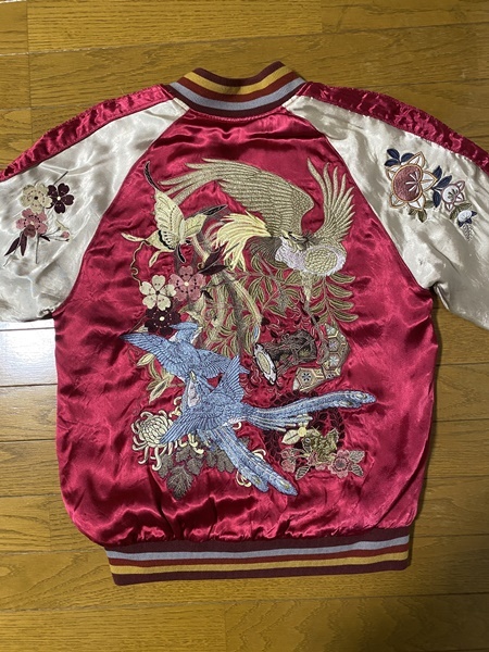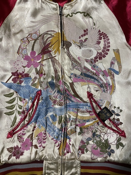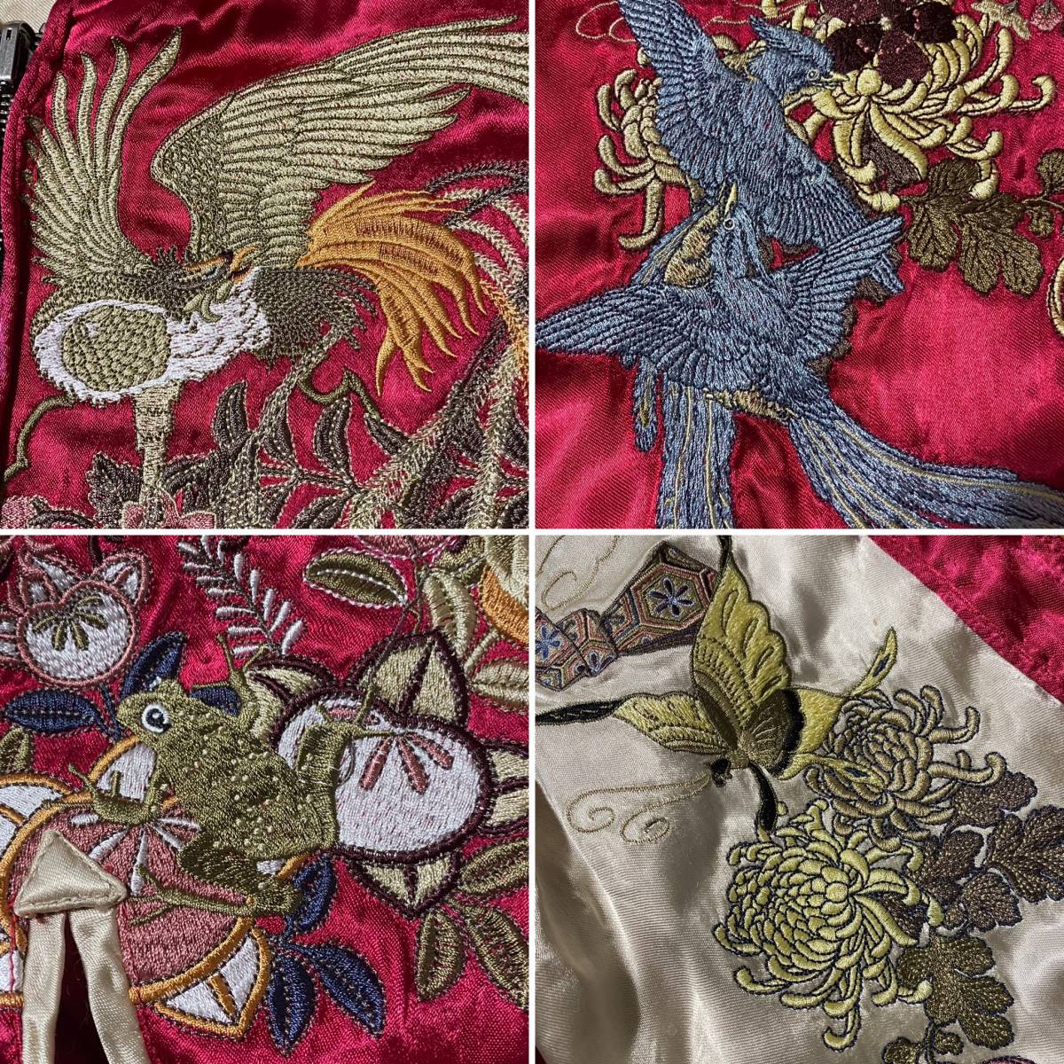| 【雅結】 和柄 蝶×鳳凰×蛙×菊 刺繍 プリント リバーシブルスカジャンになります。 |