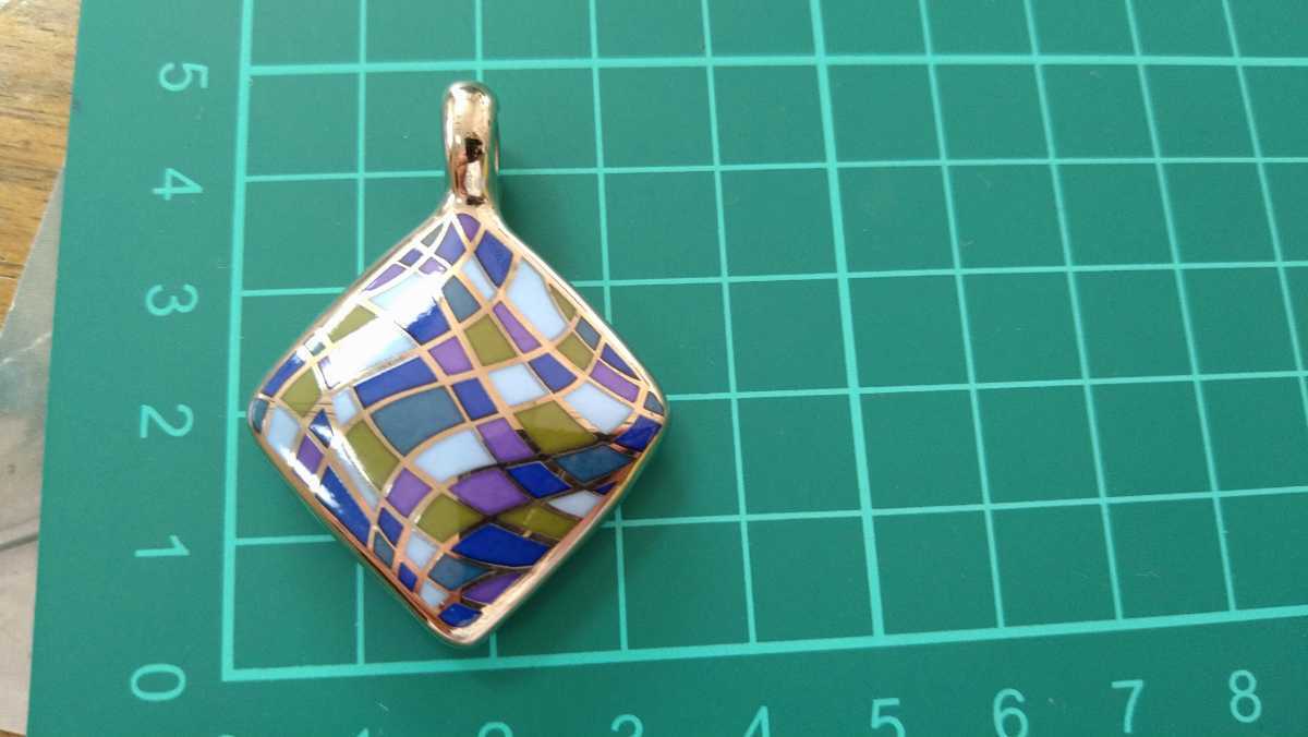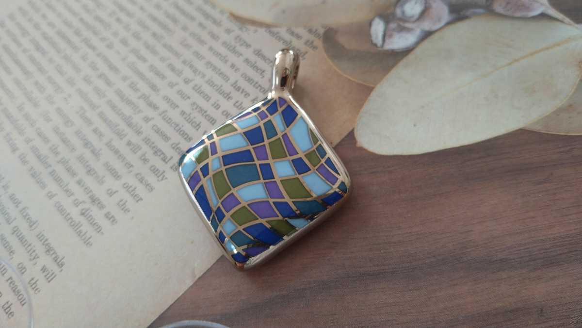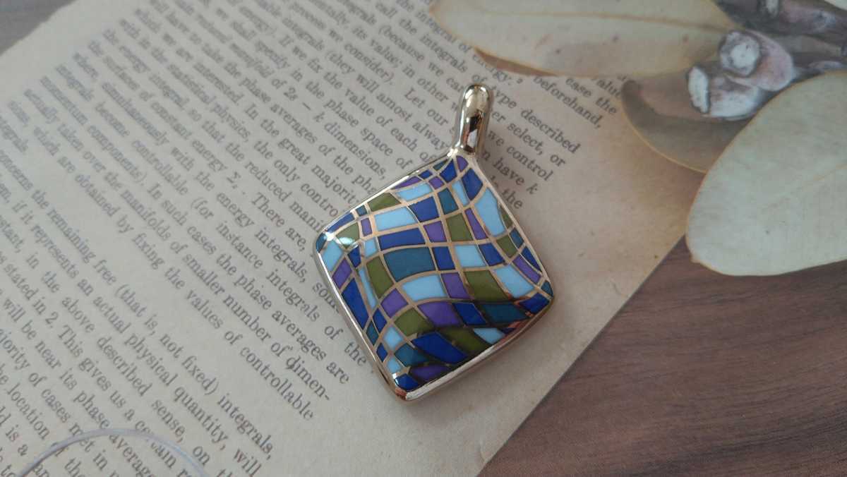 青×水色×紫×シルバーカラーの菱形ペンダントトップです