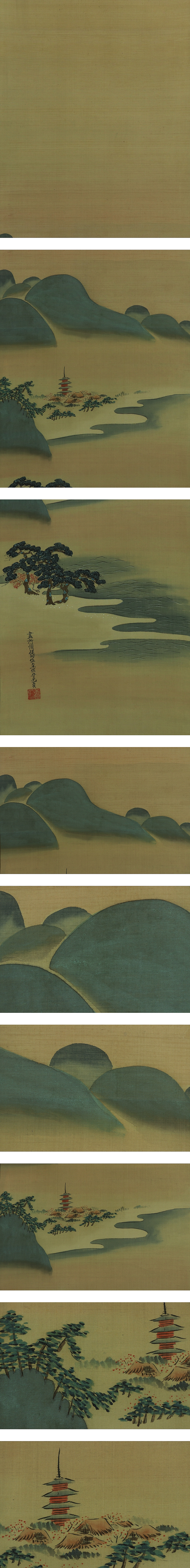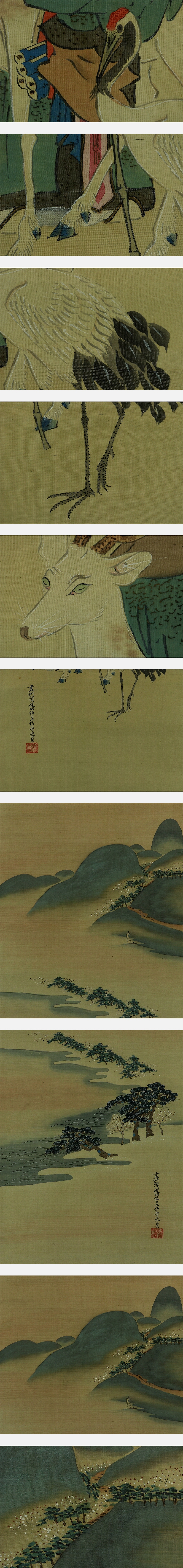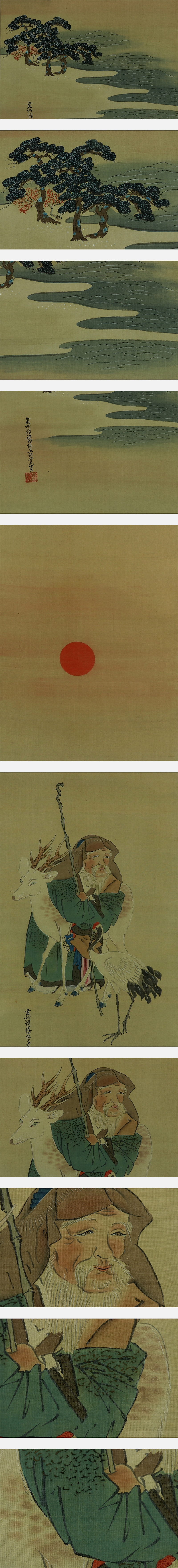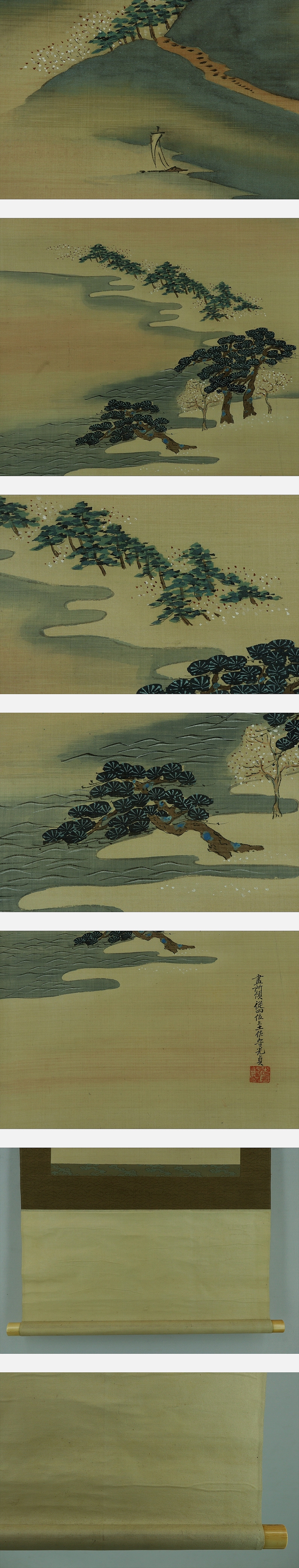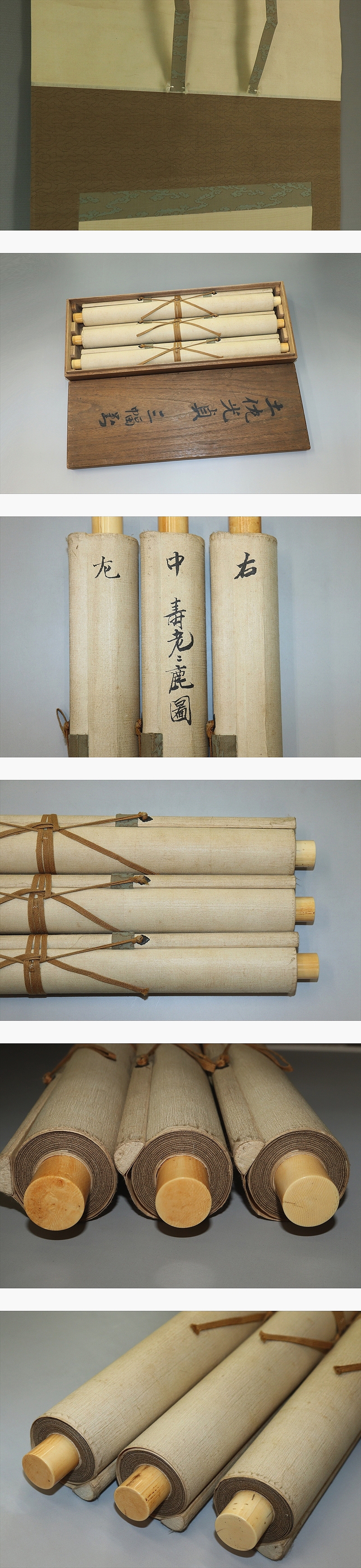 | №2209128【真作】土佐光貞【三対幅・慶祝図】◆絹本◆合箱◆掛軸 | |
