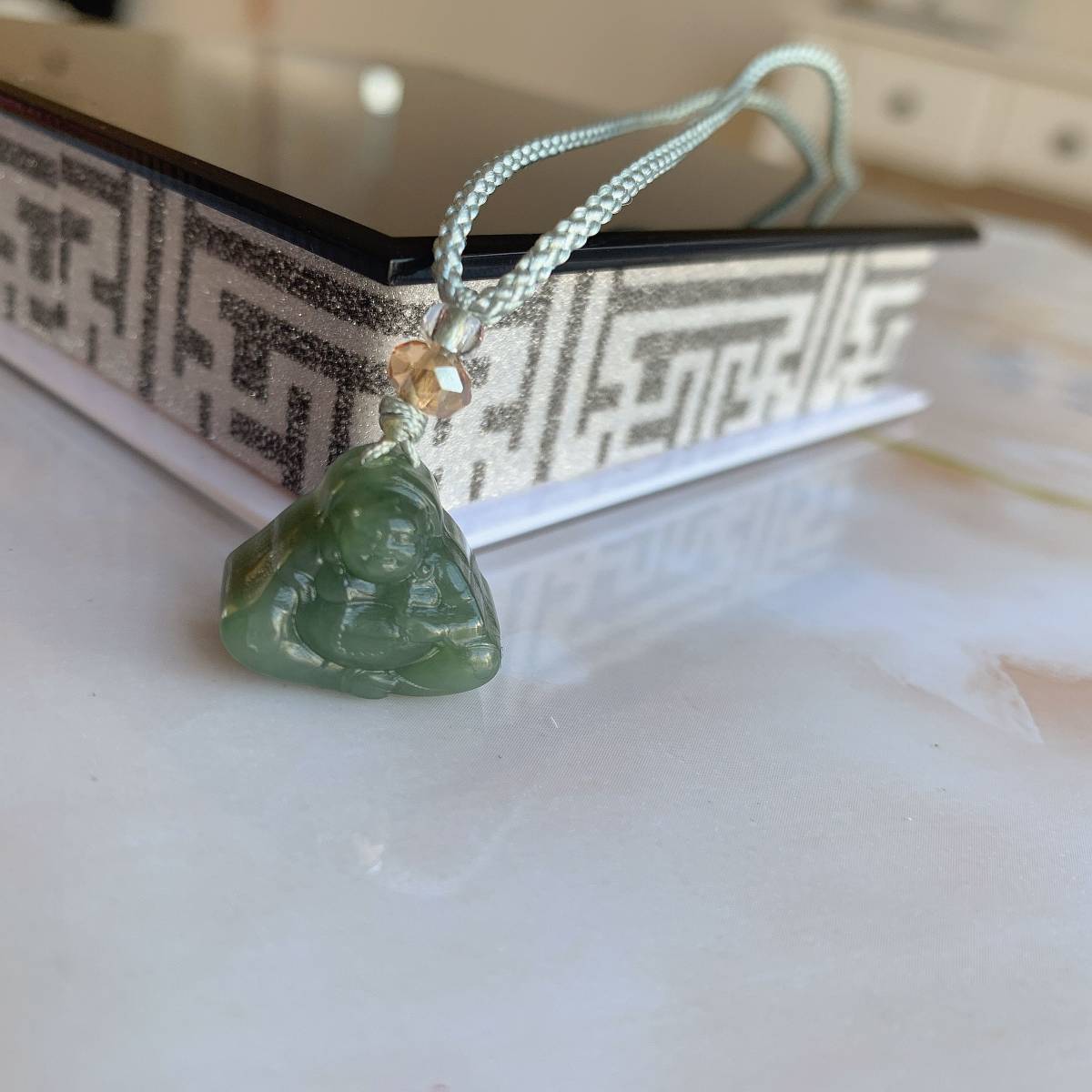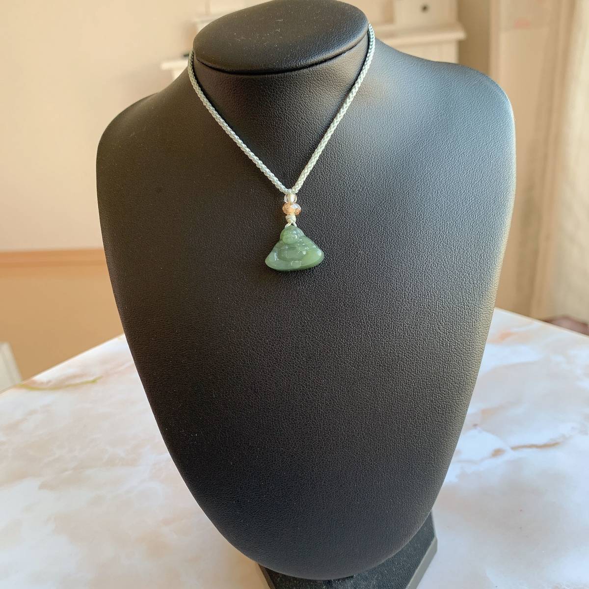 ☆和田玉☆天然石☆ネックレスペンダント☆御守り☆弥勒形☆彫刻☆ヒスイ・翡翠☆ラッピング袋付き☆プレゼントにも 14PR121207