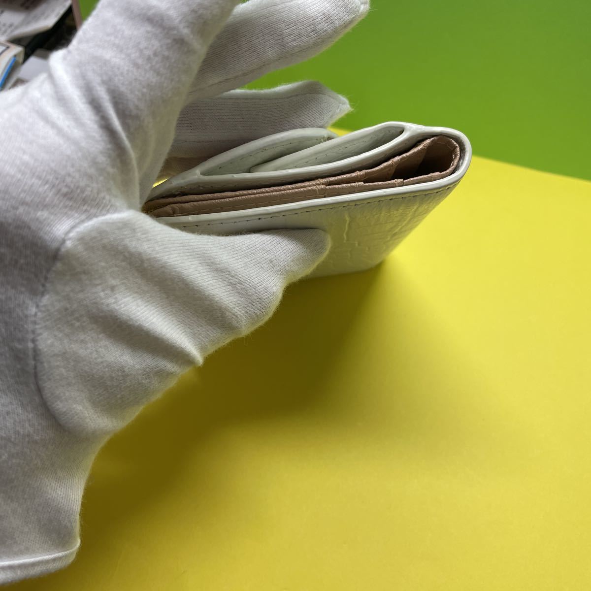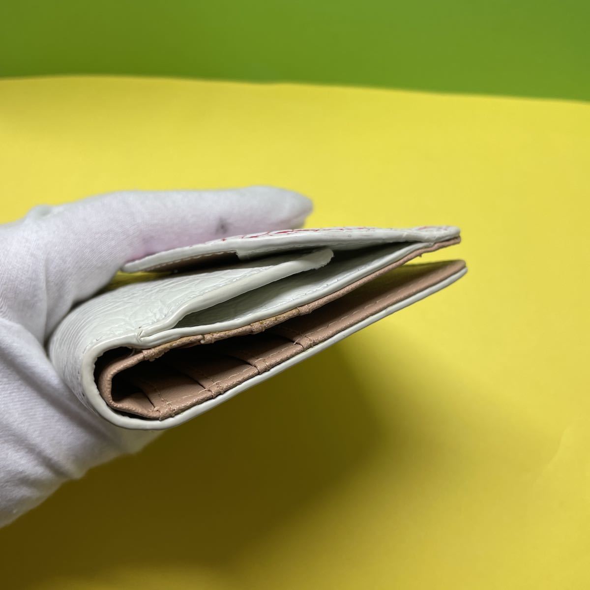 サイズ高さ約9.5センチ.横10.2センチ.マチ1.5センチぐらいです.中側にカードポケットは、8ヶ所あります.定価¥12000の商品、ホワイトカラー