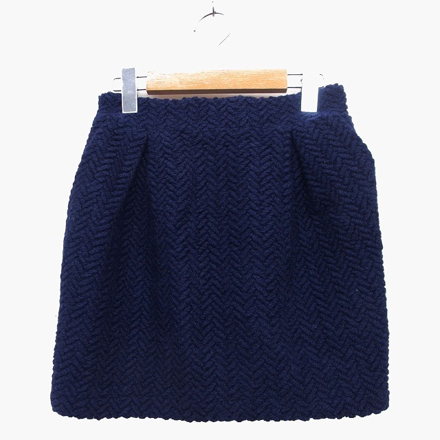 チャオパニック CIAOPANIC ニット スカート 台形 ミニ 総柄 タック ウール混 FREE ネイビー 紺 /HT20 レディース