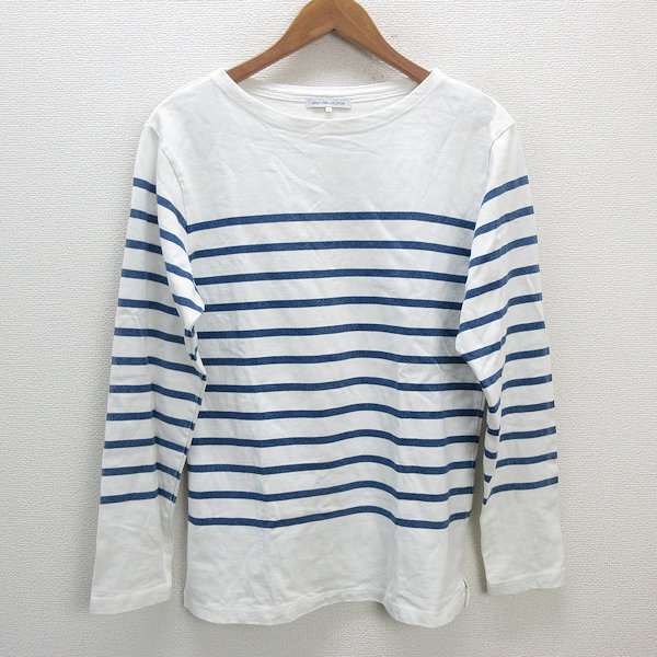 s■ユナイテッドアローズ/GLR ボーダー柄 長袖バスクシャツ【M】白/MENS/14【中古】