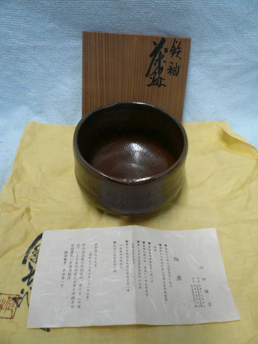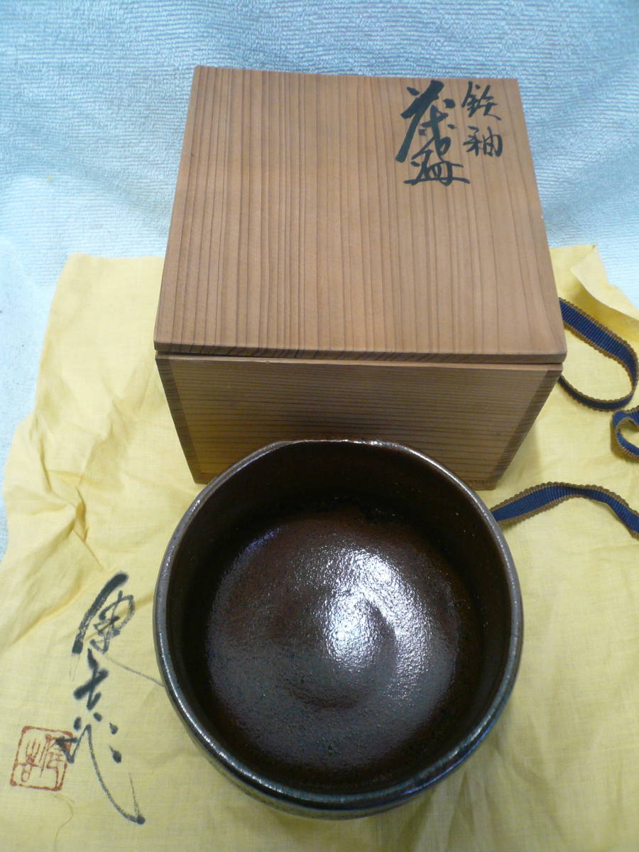 ●抹茶茶碗●常滑焼 山田健吉 作 鉄釉 未使用 共箱 #茶道具