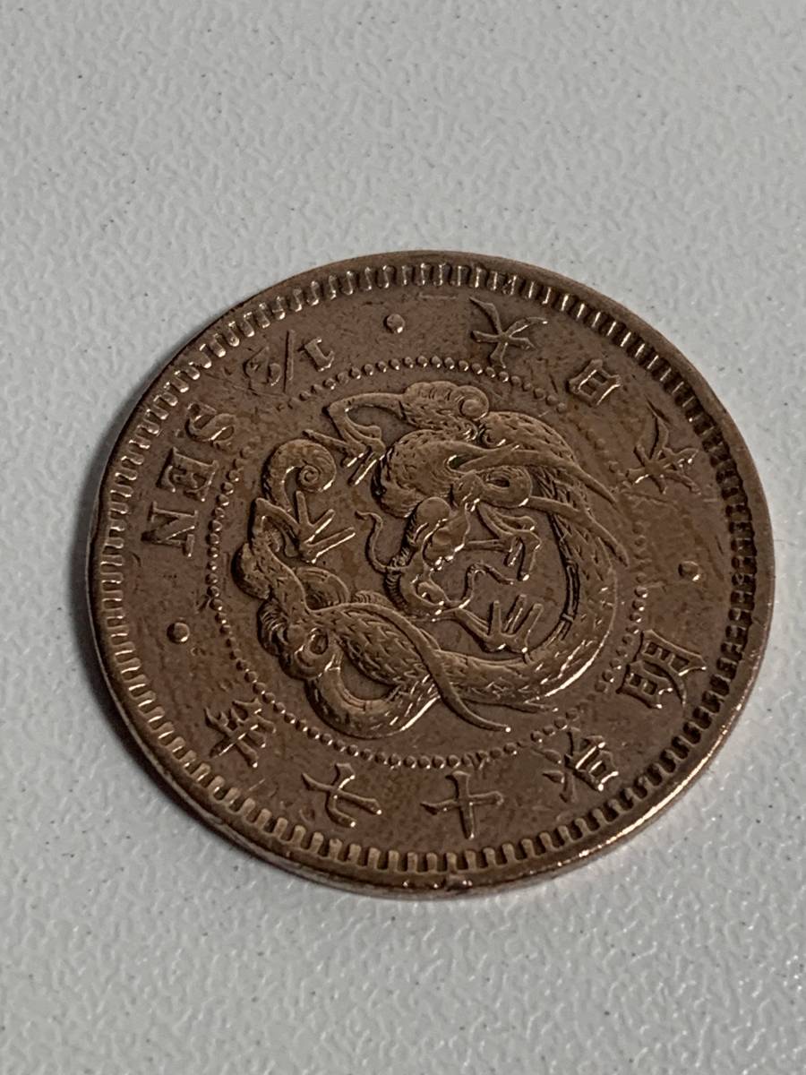 サイズ 直径:約22㎜ 重さ:約3.5g カラー:ブロンズ 竜 半銭銅貨 明治17年 1884年 極美品 銅 ブロンズ ビンテージ アンティーク 貨幣 コイン 古銭 3.5gになります。 希少な明治17年製の半銭銅貨で、ビンテージ、高級感満載で、コレクションにお勧めの自慢の一品です |
