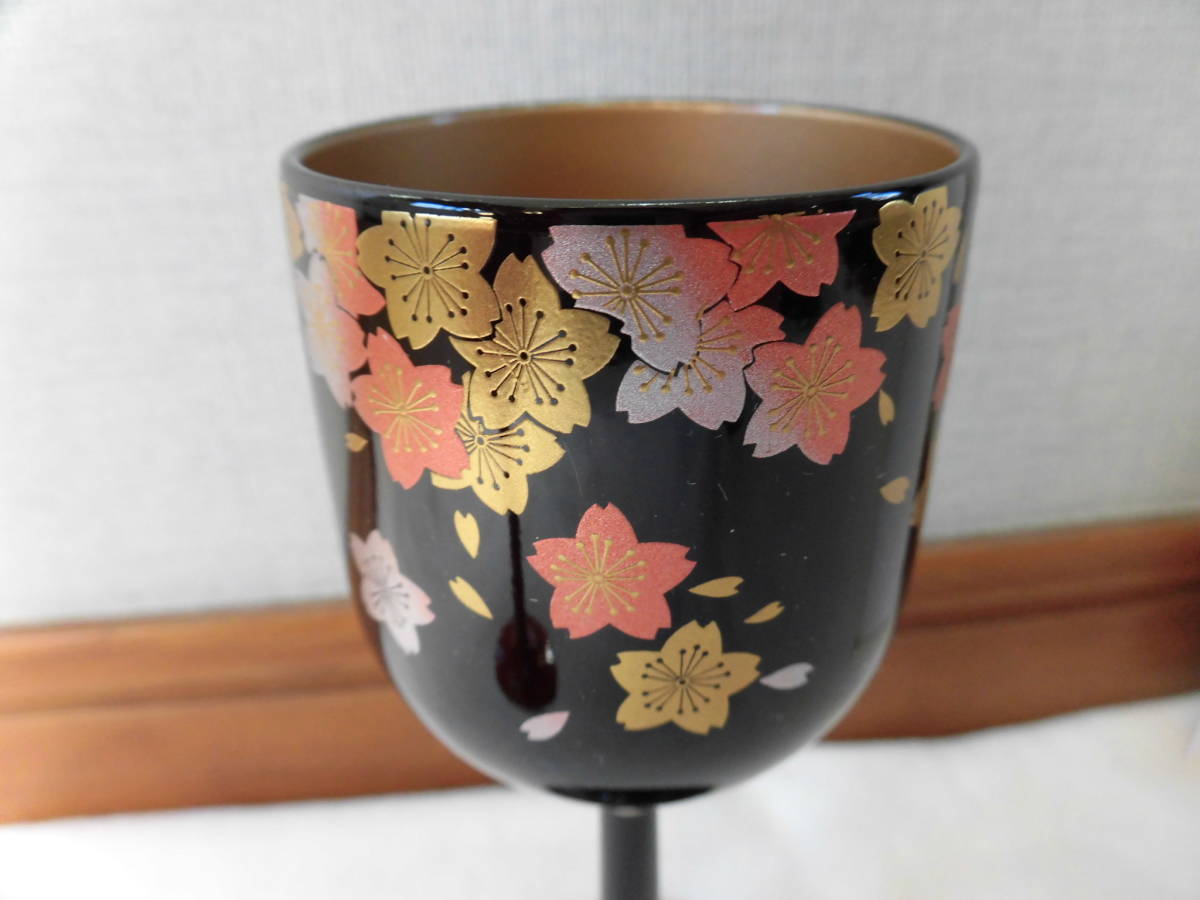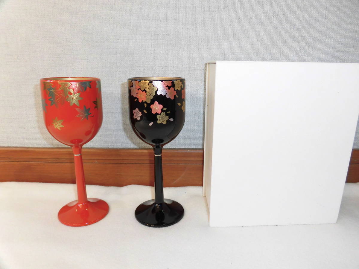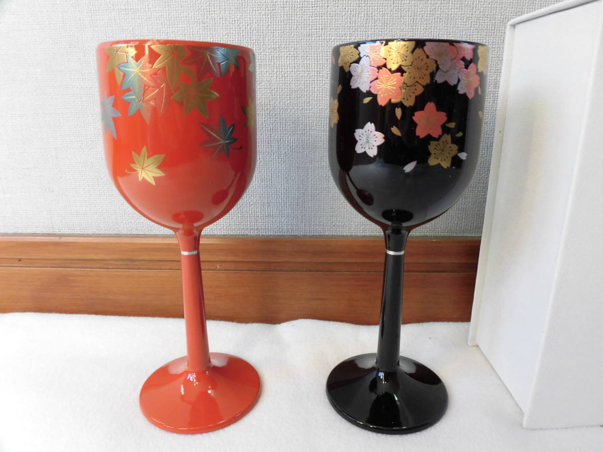 商品説明 ペアワインカップ 春秋 漆塗り? 桜、紅葉