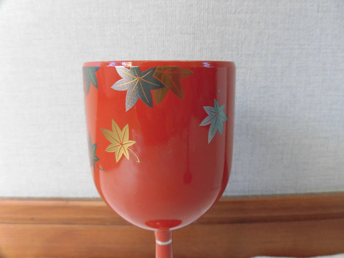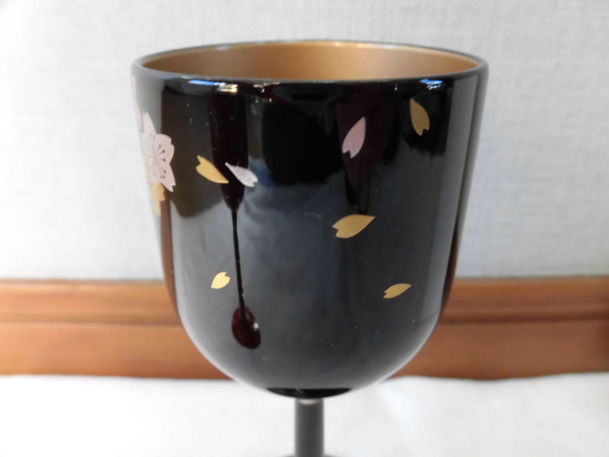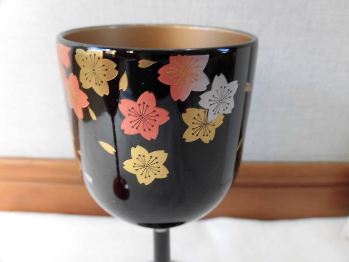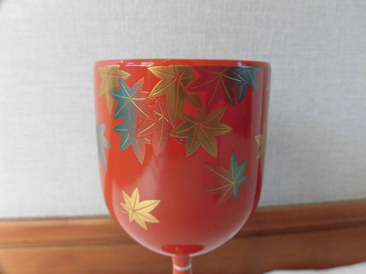 商品説明 ペアワインカップ 春秋 漆塗り? 桜、紅葉