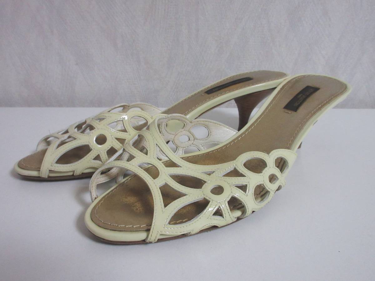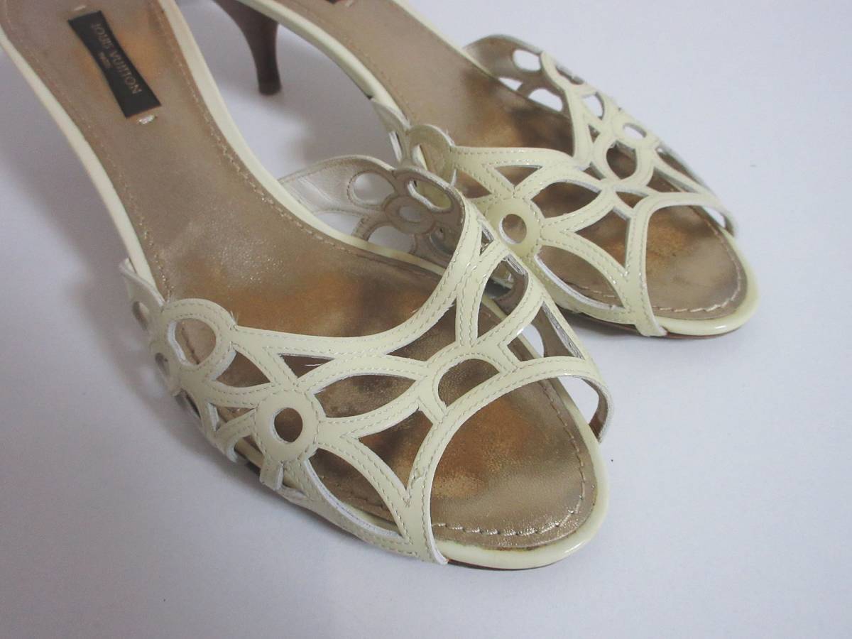 ルイヴィトン LOUIS VUITTON エナメル レザー サンダル アイボリー 37 北5913