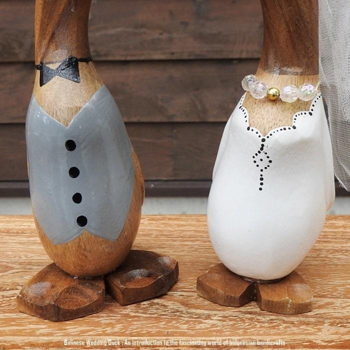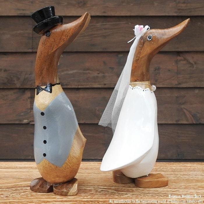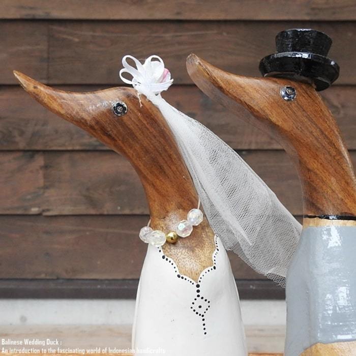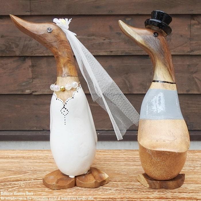 バリ島の職人さんが1点ずつ手彫りして手塗りした アヒルさんのウエディングドールSSサイズモデルです。