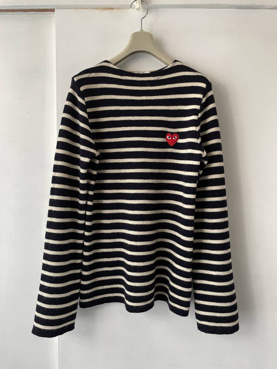 PLAY COMME des GARCONS プレイ コムデギャルソン ハートワッペン長袖ボーダーニット S