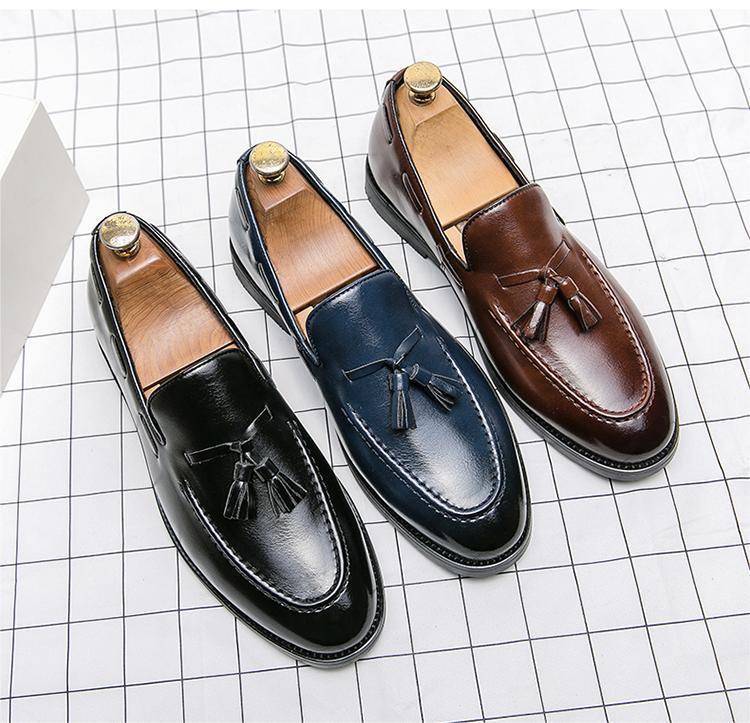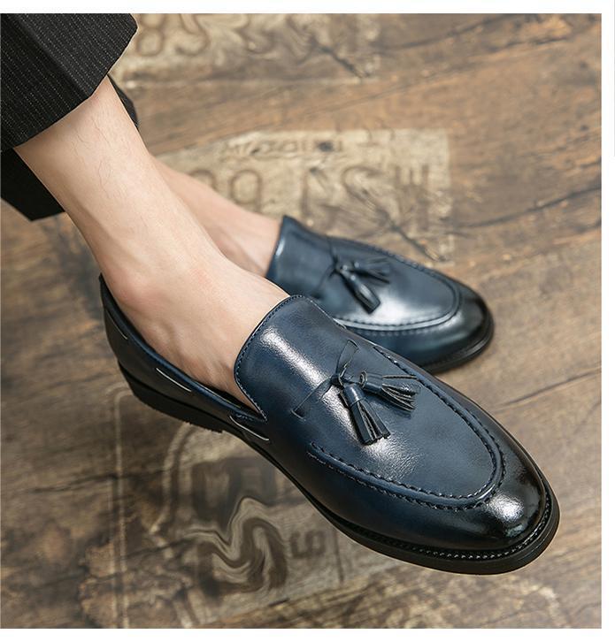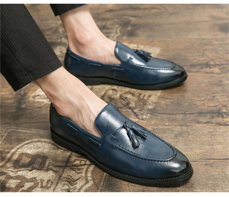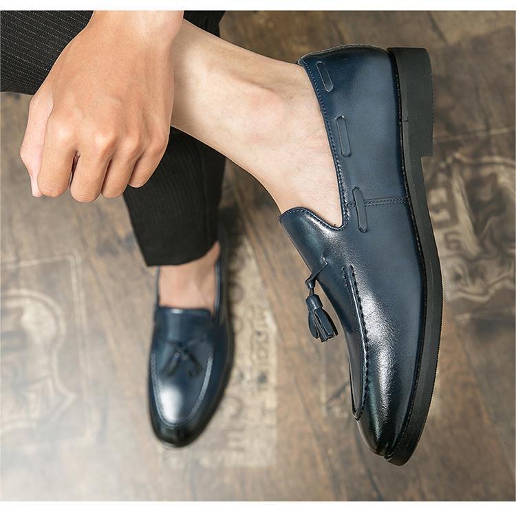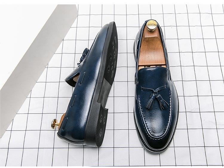 ★NEW★メンズ TG21570-25.0cm/40 ビジネスシューズ 紺色(3色) クラシカル おしゃれ レトロ UK風 タッセル ローファー デッキシューズ