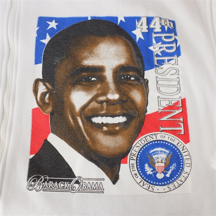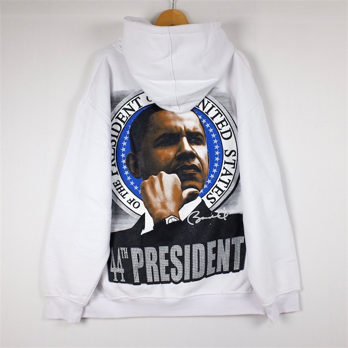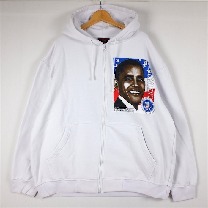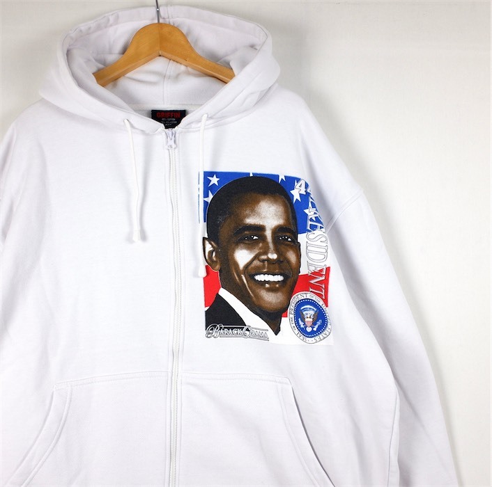 GRIFFIN バラクオバマ 両面プリント 長袖スウェットジップアップパーカー メンズUS-4XLサイズ ホワイト sh-3875