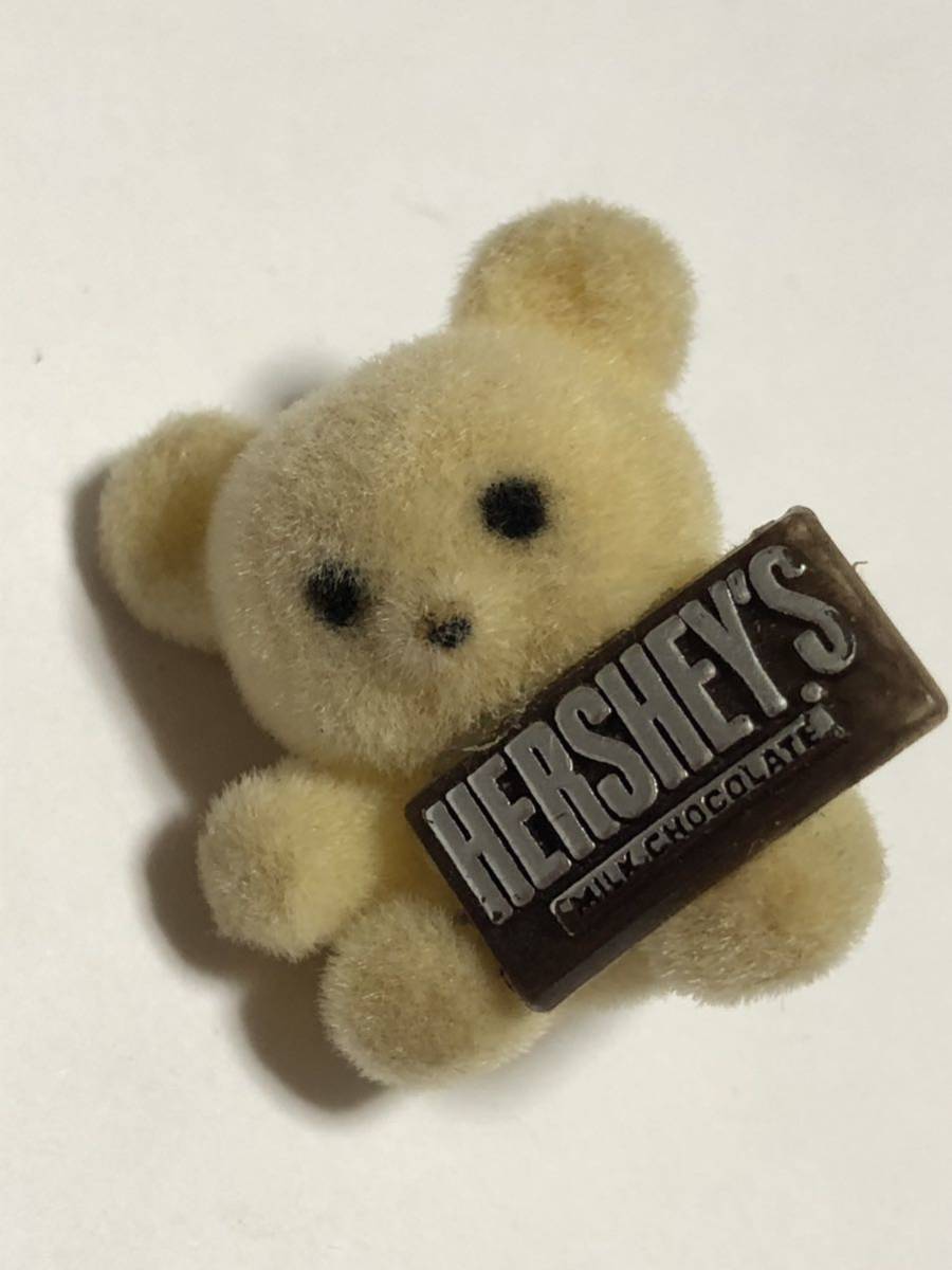 ・ HERSHEY’S ハーシーズ チョコ クマ フィギュア マスコット付き ピンバッジ (ジャンク)になります。