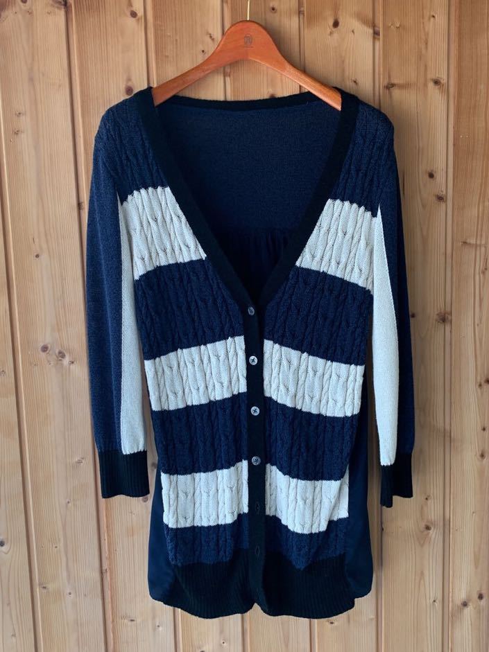 グレースコンチネンタルで、2万2050円で購入しました、ネイビー系のカーデガンです。