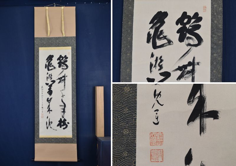 真作/建部快運/書/高野山大僧正/鶴無千年樹亀遊萬歳池/茶道具/茶掛/禅語//掛軸☆宝船☆AA-528