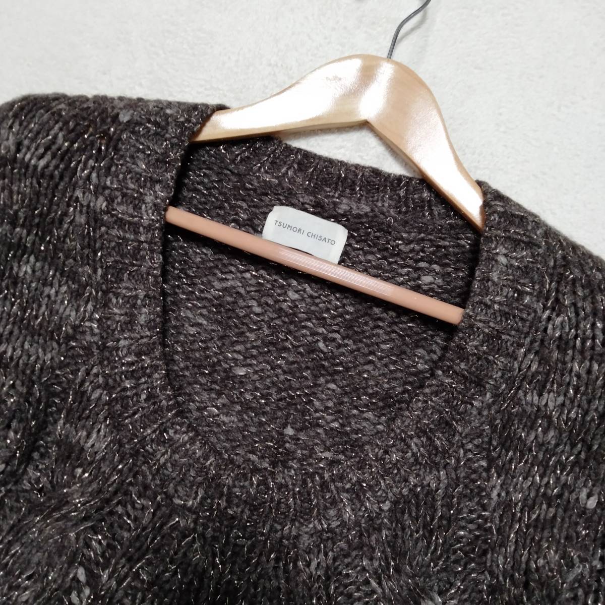 TSUMORI CHISATO ツモリチサト トップス ニット セーター 無地 ショート ラウンドネック 長袖 レディース サイズ2 ブラウン SN104