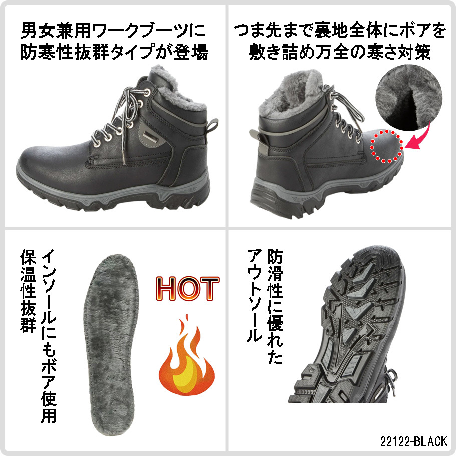寒さ対策万全なワークブーツ、飽きの来ないデザインで、お仕事やアウトドアはもちろん、おしゃれなカジュアルスタイルでお出かけにも使える最強アイテムです。