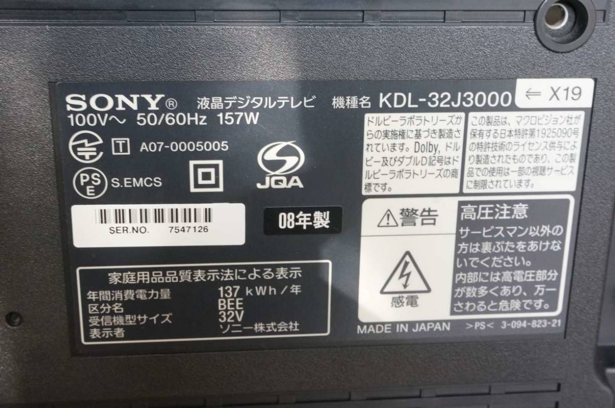 SONY ソニー BRAVIA ブラビア 地上・BS・110度CSデジタルハイビジョン液晶テレビ KDL-32J3000 32インチ 中古品です。