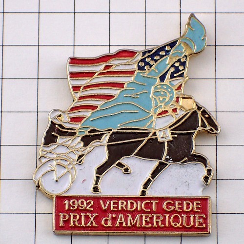 | "ピンバッジ・競馬ニューヨーク星条旗アメリカ自由の女神"の商品説明 | |