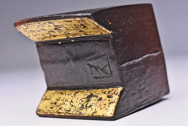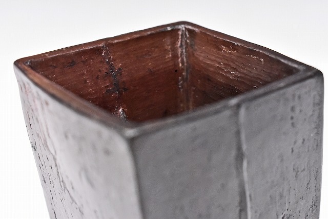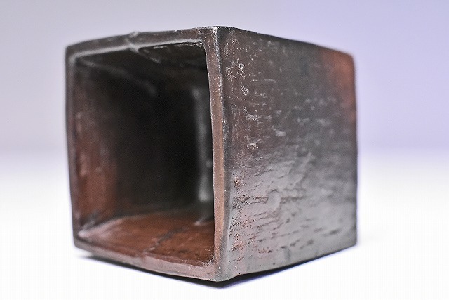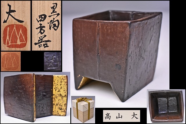 高山大 ★ 黒陶 四方器 ★ 共箱 共布 栞 ★ 師: 近藤高弘 ★ 真宗高田派 光泉寺 住職 ★ 独特の造形は小品ながら飾っても存在感のある逸品