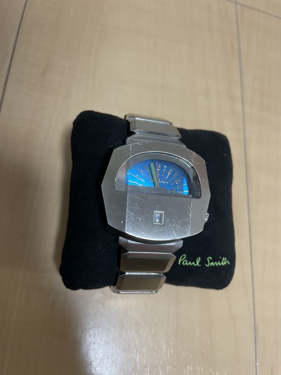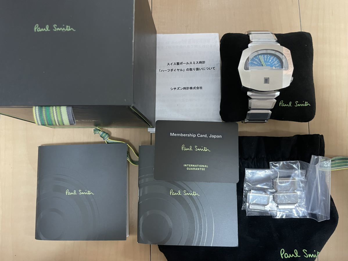 ポールスミス、鉄仮面のスイスコレクションモデルです。コレクション整理のため出品します。現在動作しています。付属品は一式揃っています。状態は使用感が見受けられます。カレンダーが少し見えづらくなっている感じがします。一度人の手に渡った自宅保管のものですので神経質な方はご遠慮ください。