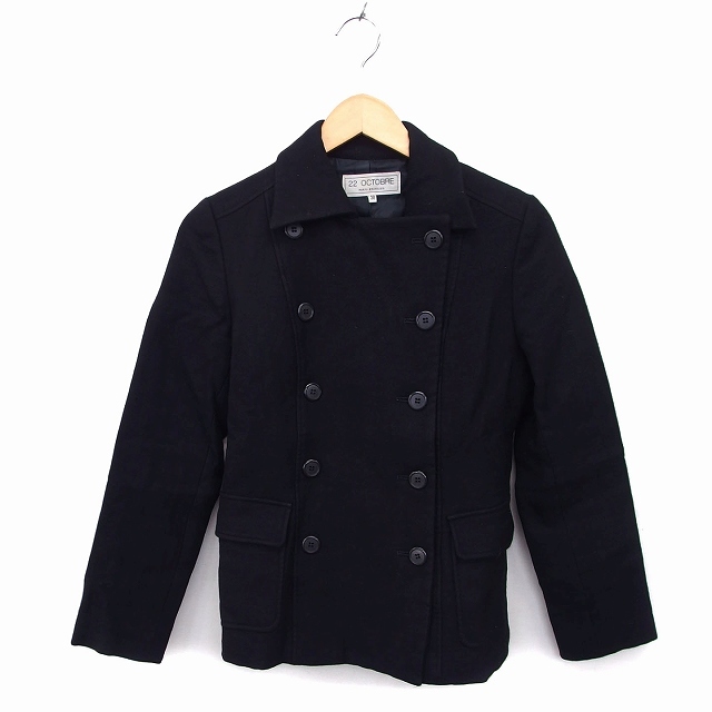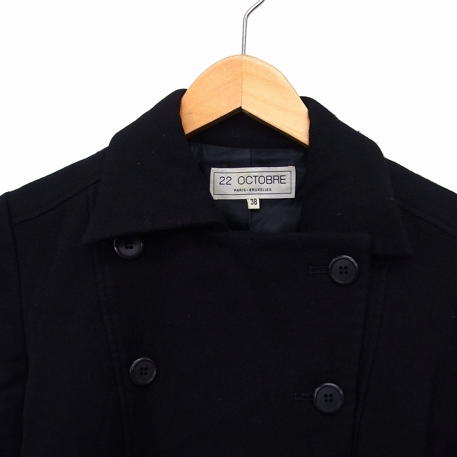 22オクトーブル 22 OCTOBRE ステンカラー コート アウター ショート ダブル ウール 無地 38 黒 ブラック /NT14 レディース