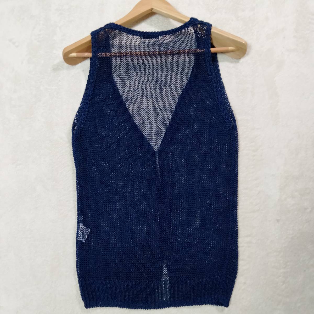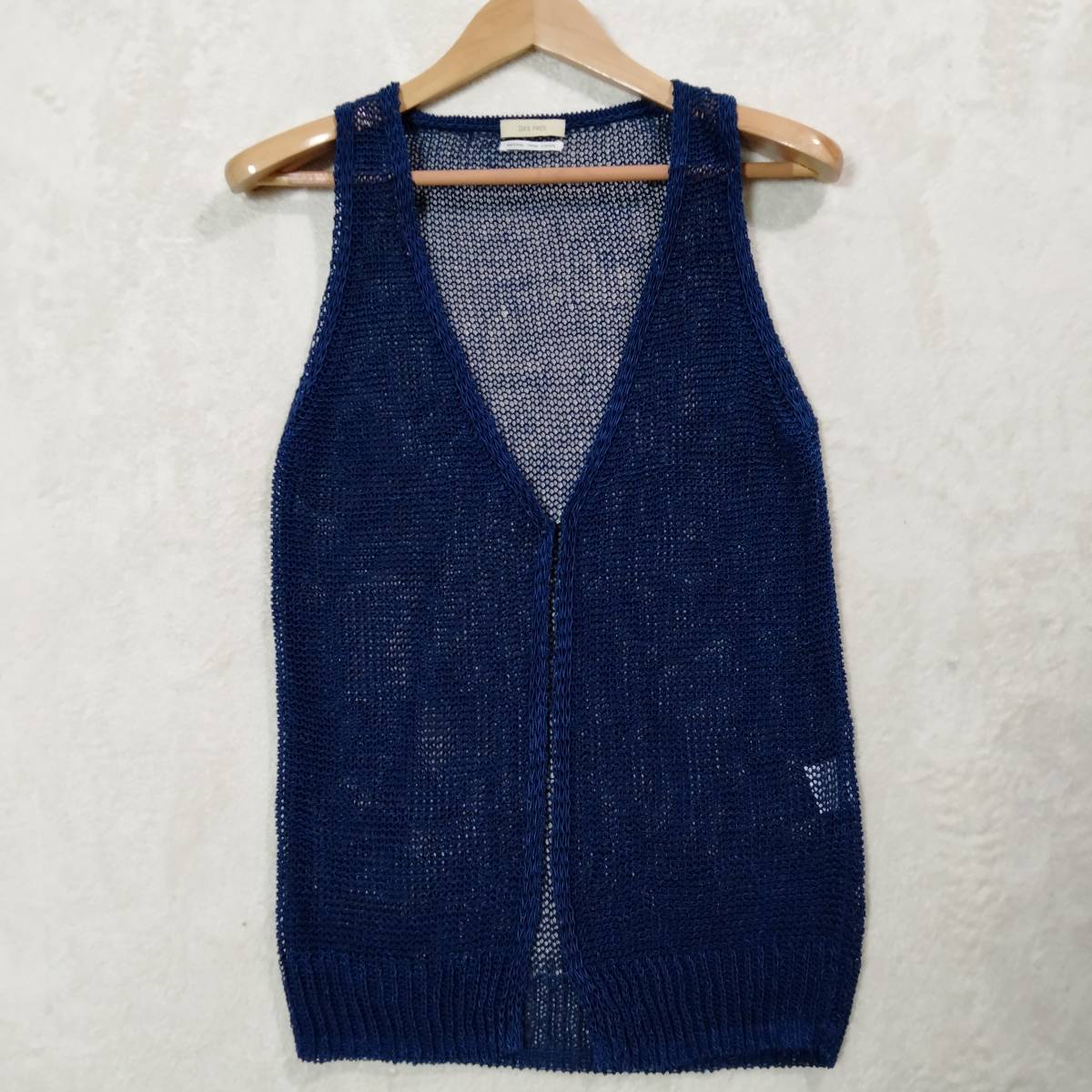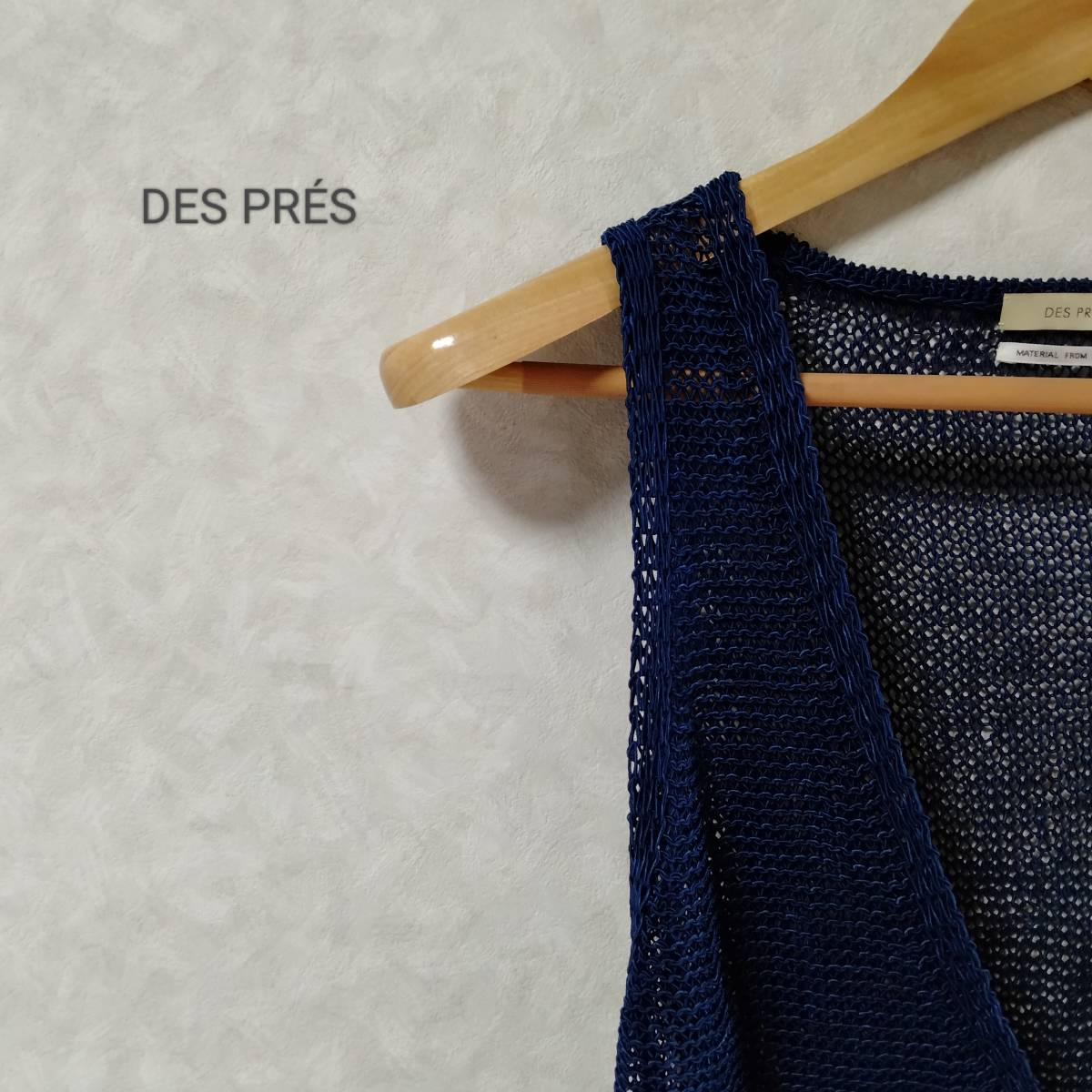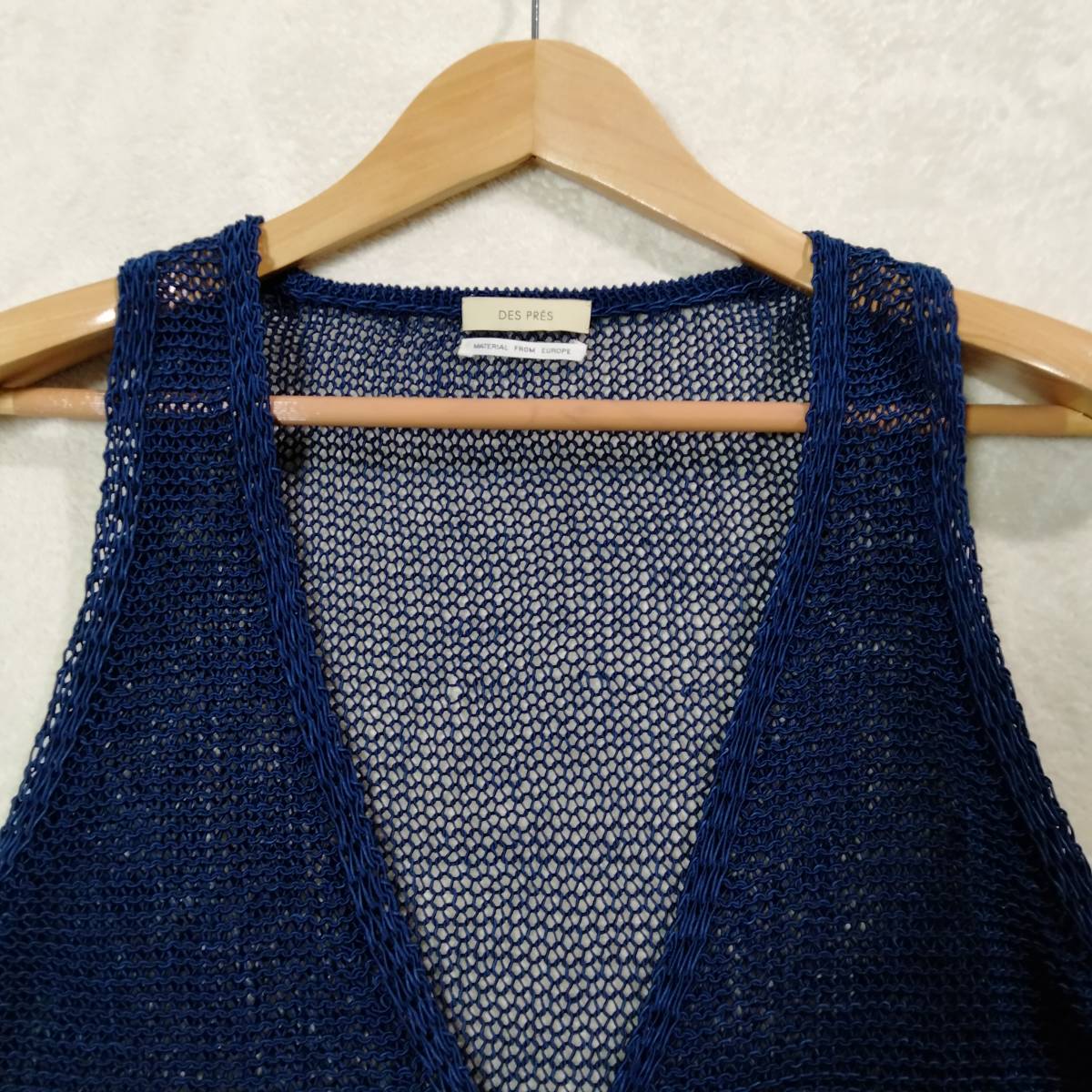 DES PRS デ・プレ ニット ベスト セーター Vネック 無地 ノースリーブ レディース サイズ1 ブルー SJ268