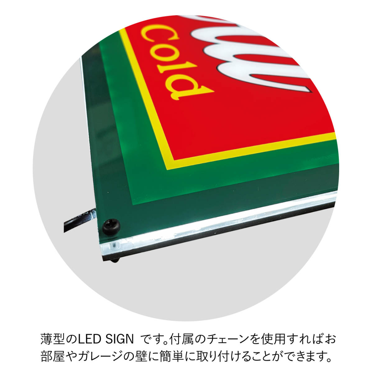 薄型のLED SIGNです。 付属のチェーンを使用すればお部屋やガレージの壁等に簡単に取り付けることができます