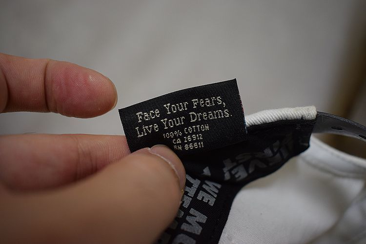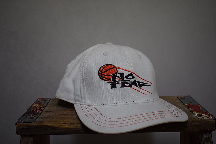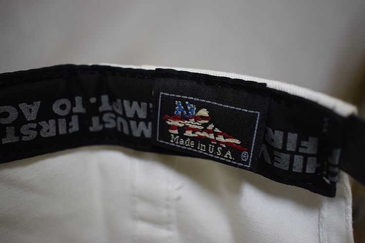 グッドカラーデッドストック品USA製90SビンテージNO FEARノーフィアスナップバックキャップ白アメリカ製アメカジストリートスポーツh21847