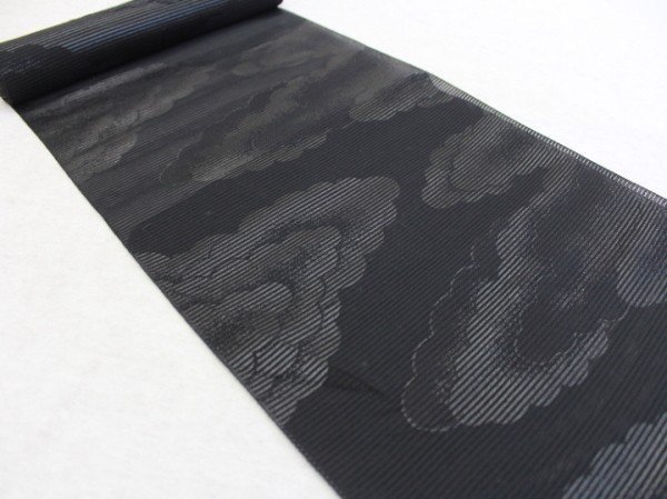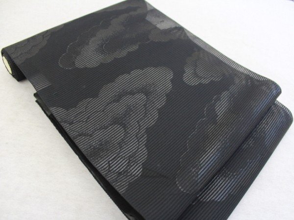 ★品名★             夏喪服用 漆箔絽黒全通名古屋帯 未仕立て新品反物