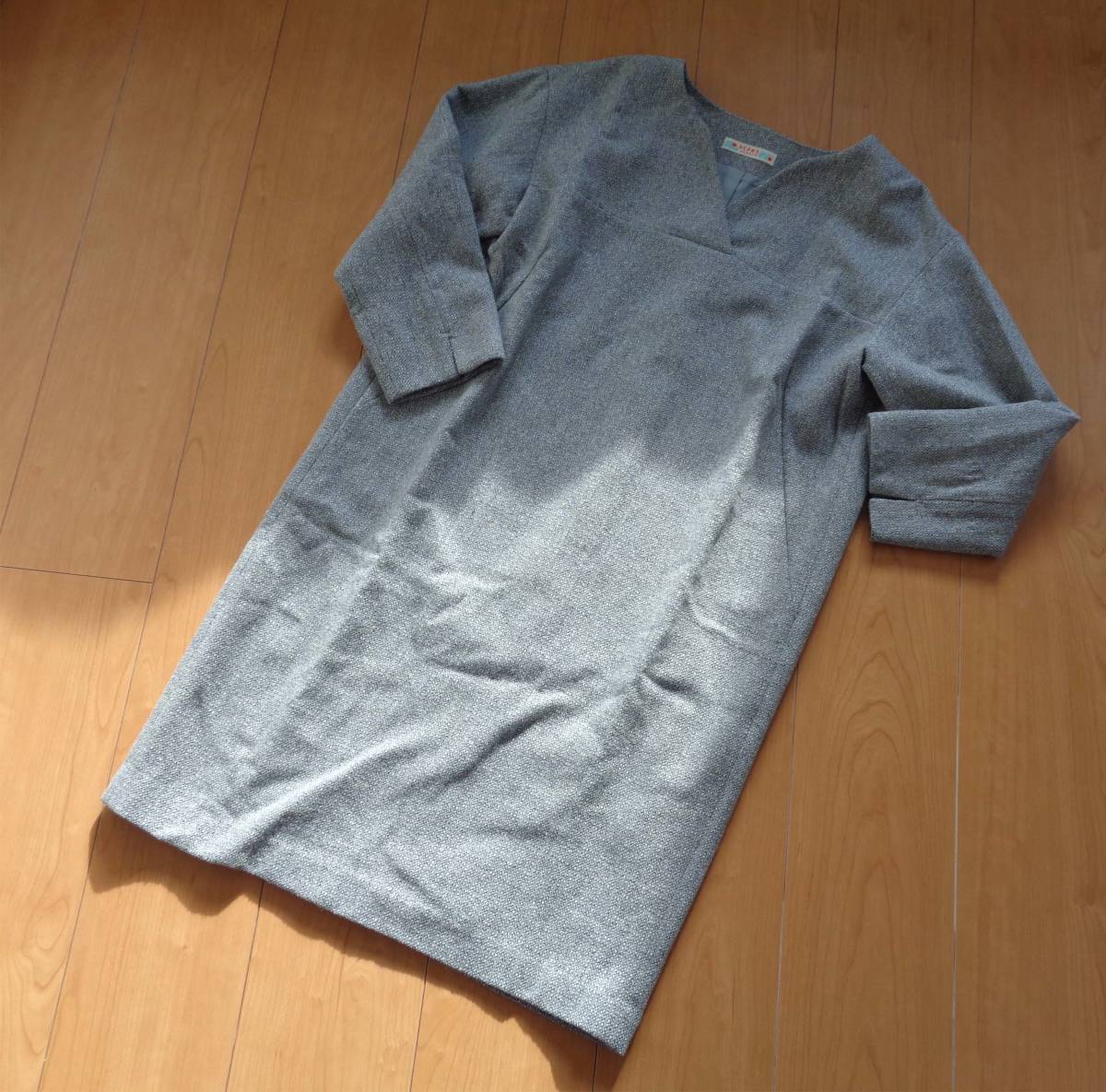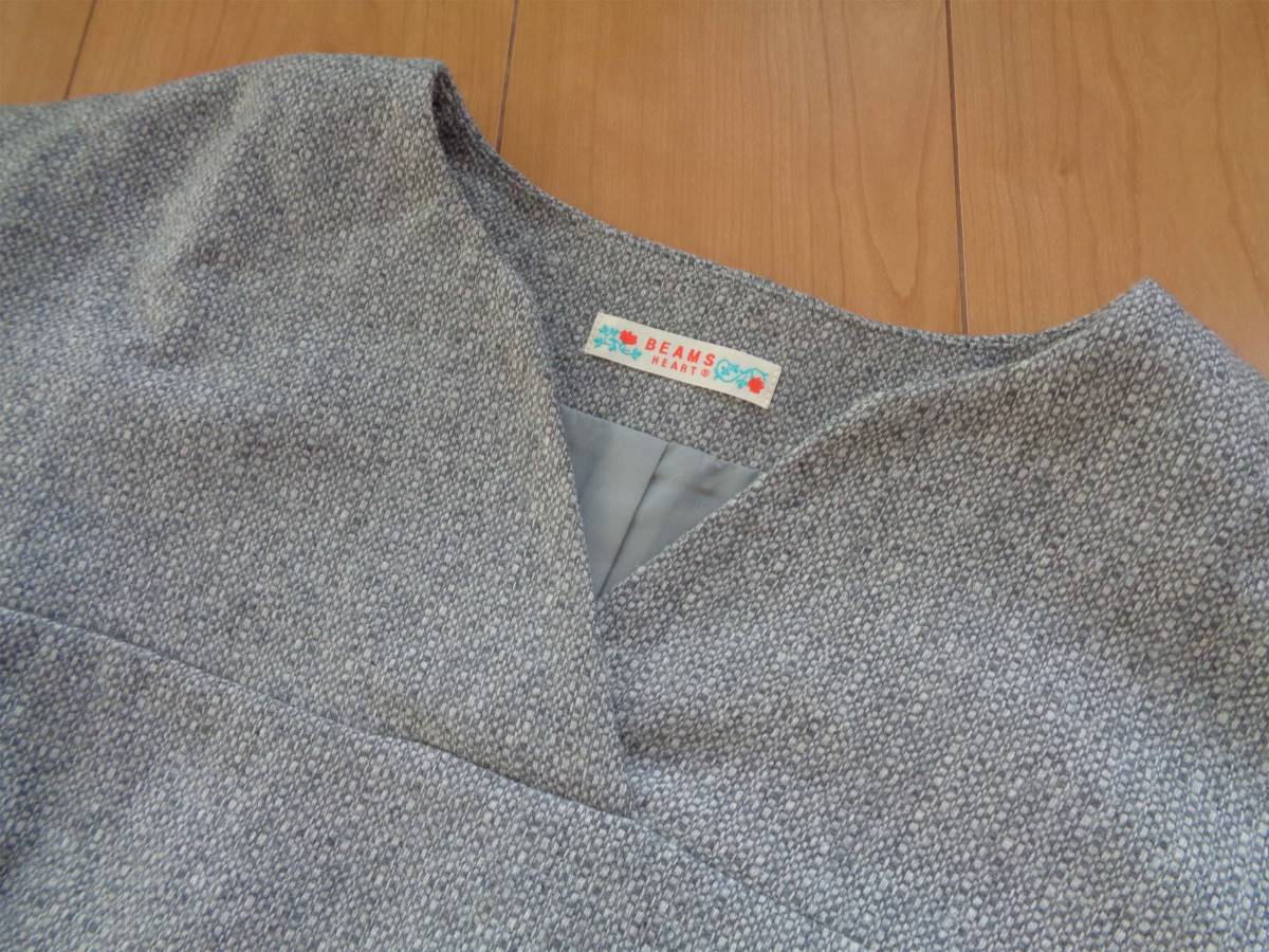 サイズはFでビームスハートのツイードワンピースになります。裏地はついてます。袖先は折り返しができます。