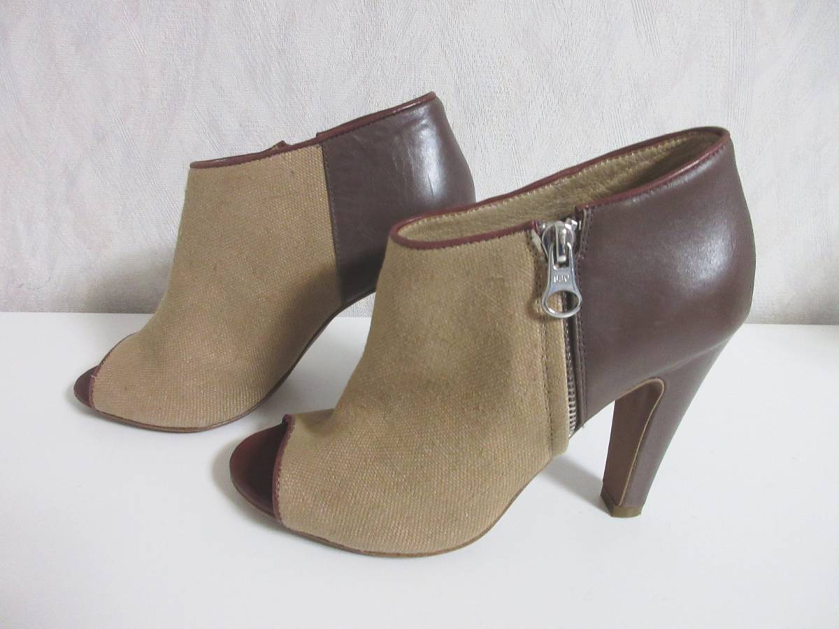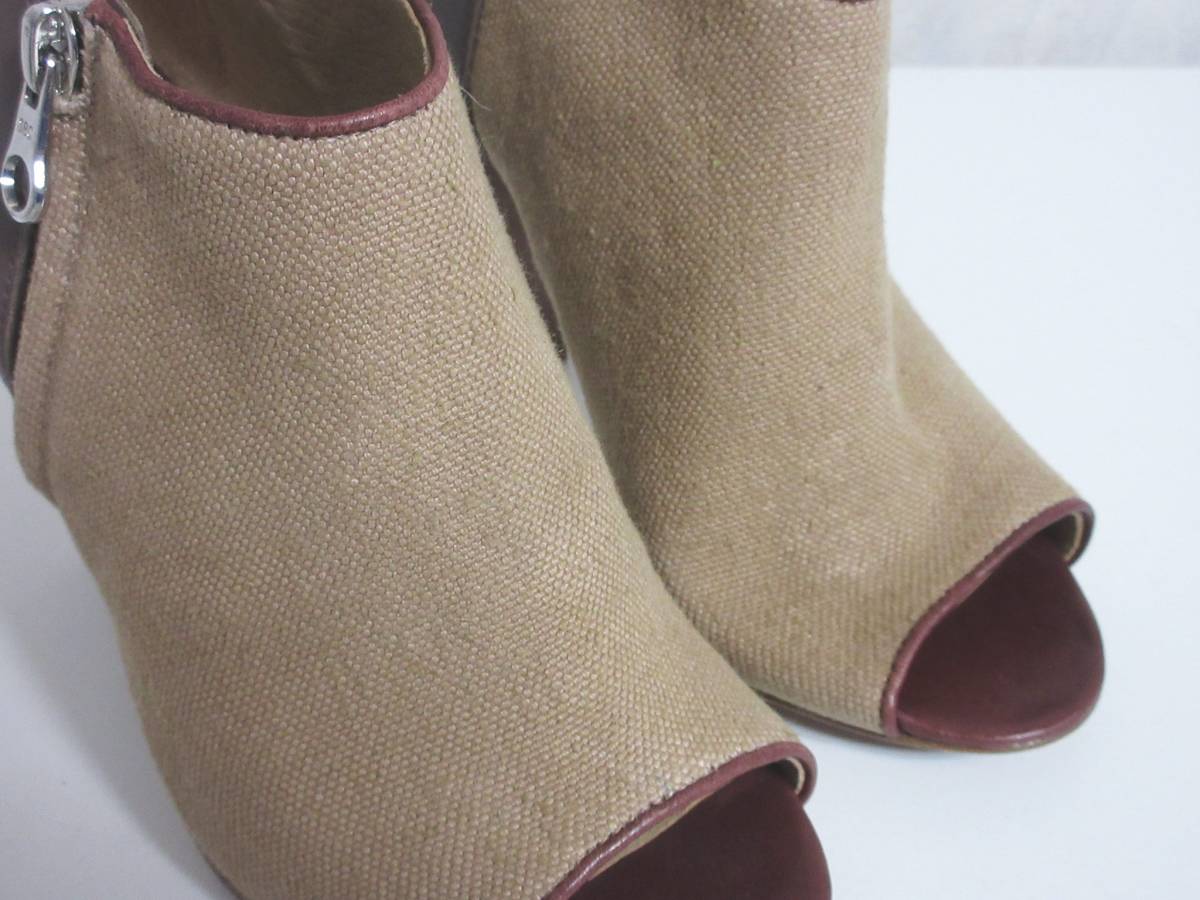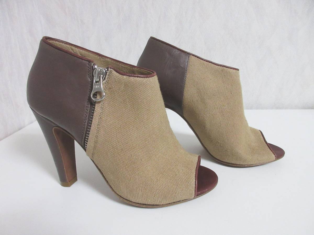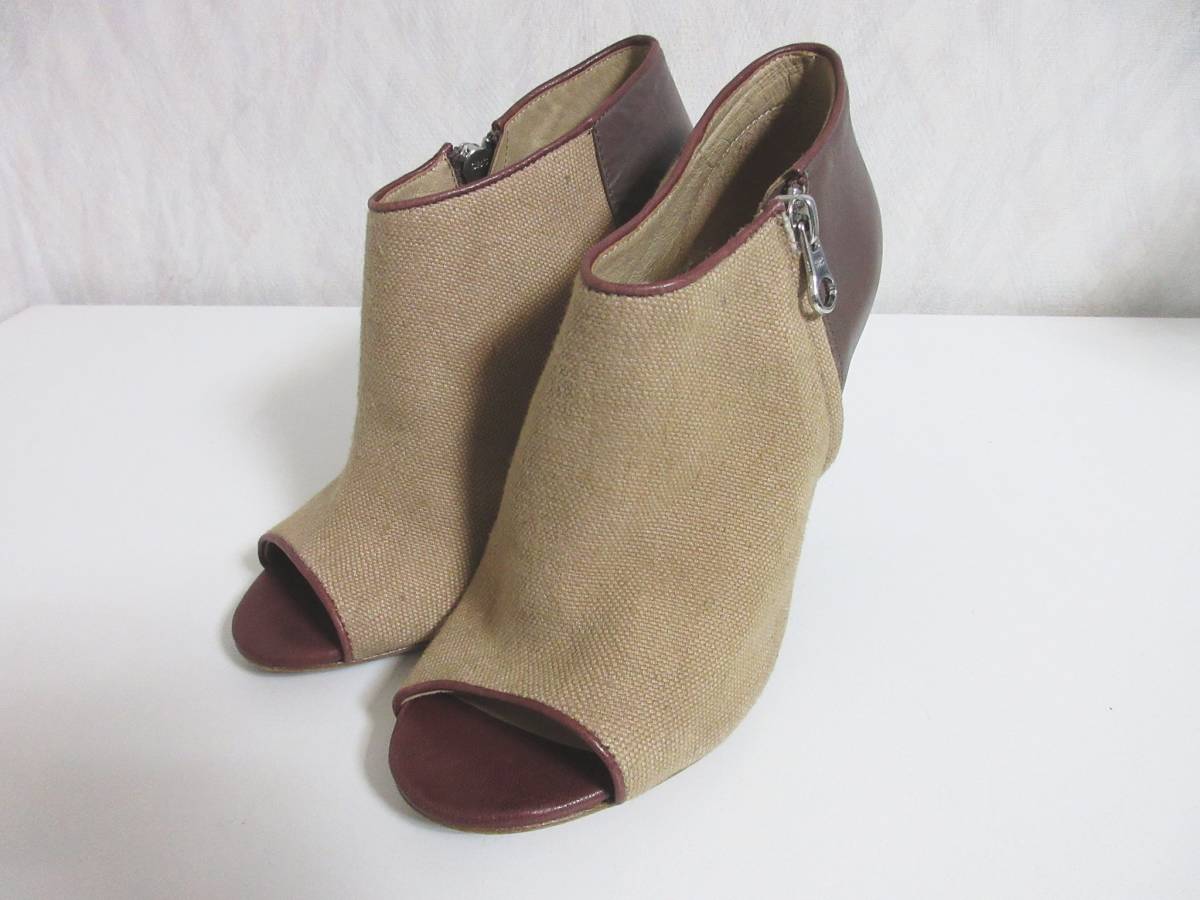 シーバイクロエ ブーティ オープントゥ レザー キャンバス ハイヒール 36 茶 irmri hj258