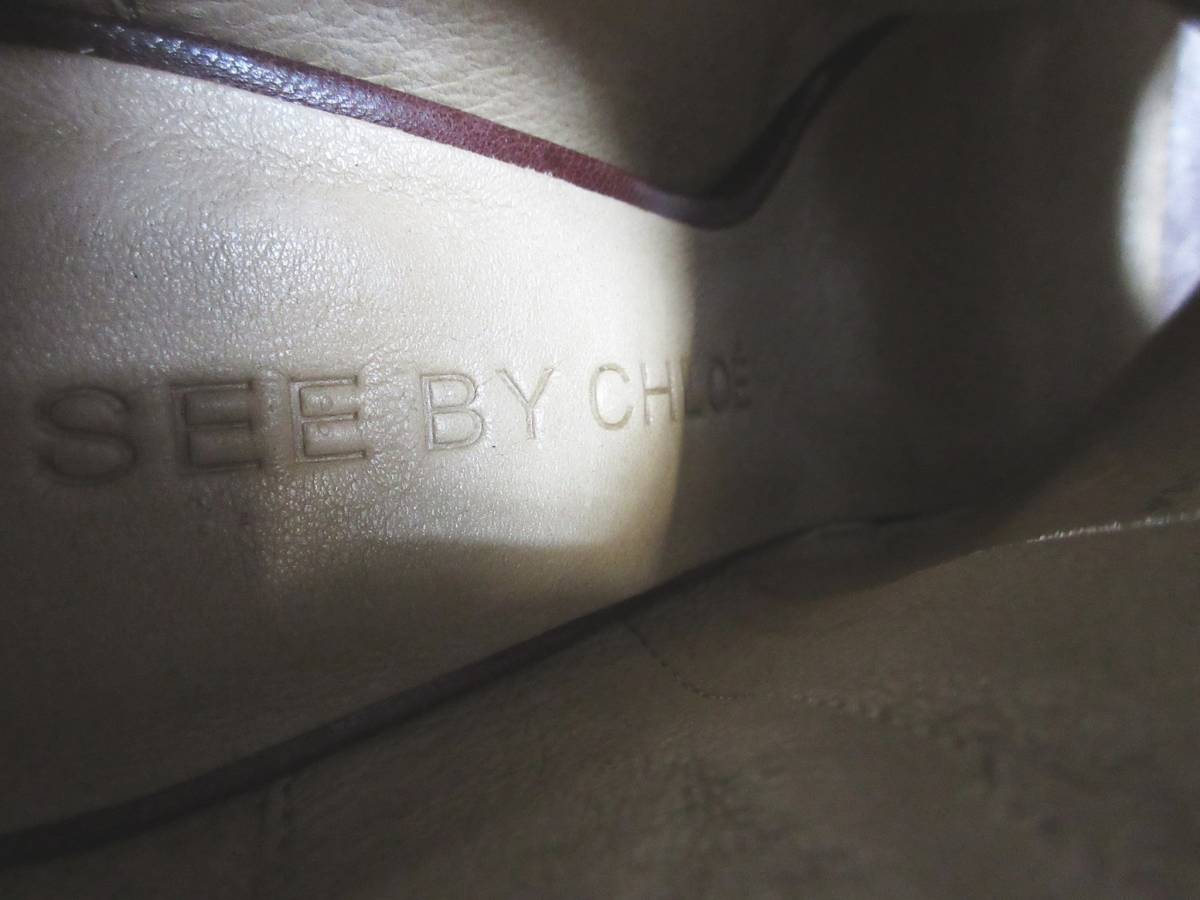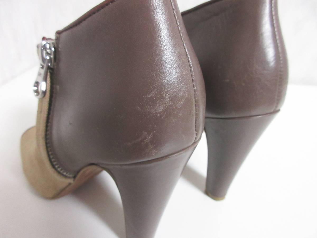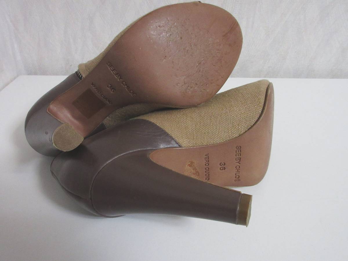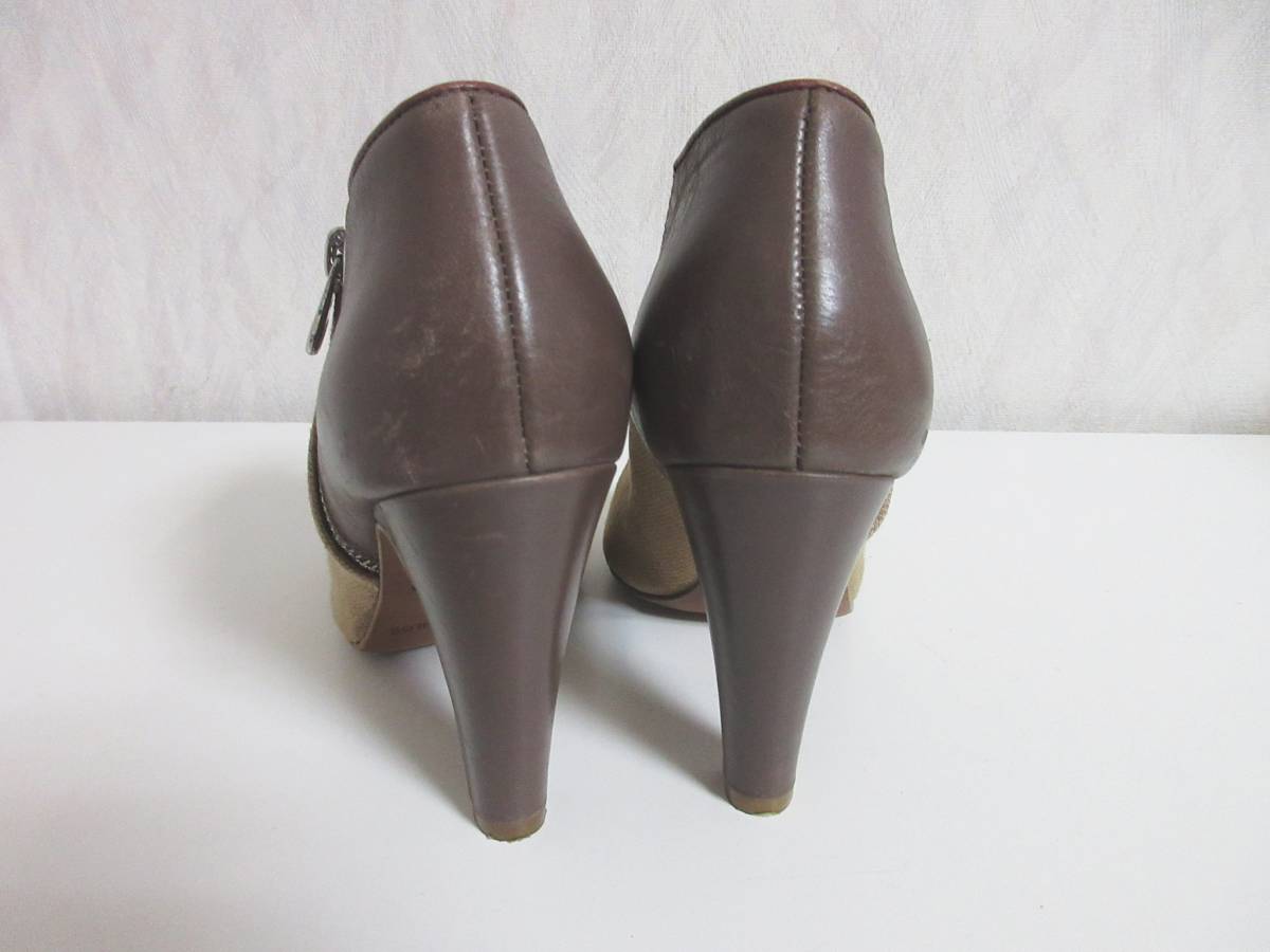 シーバイクロエ ブーティ オープントゥ レザー キャンバス ハイヒール 36 茶 irmri hj258